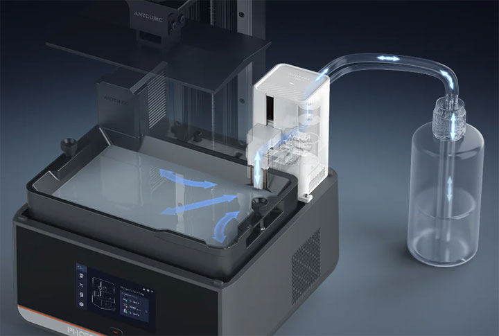 Un filtre à charbon actif intégré et une ventilation améliorée réduisent la toxicité des résines, sans toutefois recommander l’utilisation de la Photon M7 Pro dans une chambre ou un séjour.
