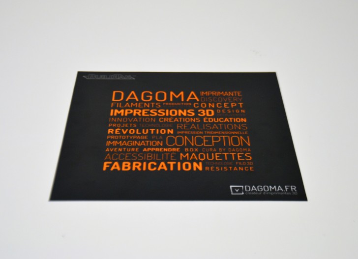 Accessoire quasiment indispensable pour des impressions de qualité et ne pas risquer d’abimer un objet fraichement imprimé, le plateau Build Tak est en ce moment offert à l’achat d’une Discovery200. L’imprimante 3D Dagoma remporte un franc succès, c’est un excellent produit pour découvrir la fabrication additive et faire évoluer sa machine, Ottavio avait d’ailleurs testé la #discovery200 et la section dédiée sur le forum attire de nombreux makers depuis que Dagoma nous a fait confiance.