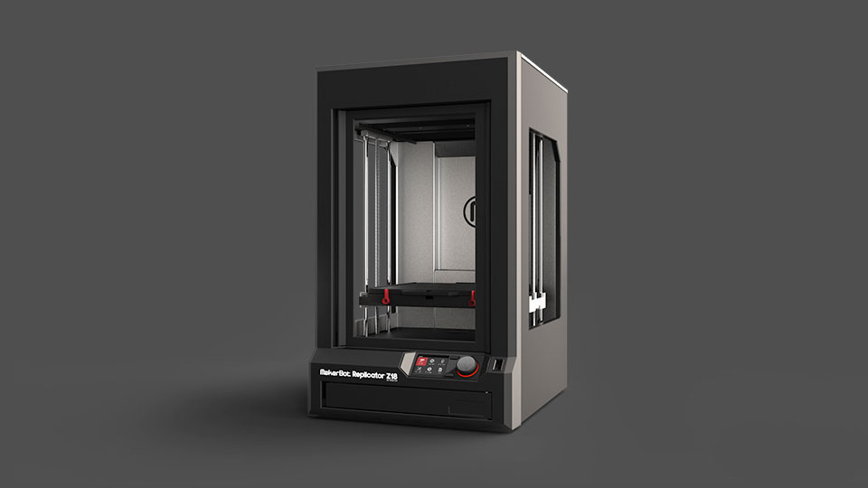 Avec la Replicator Z18, MakerBot s’adresse aux professionnels ou particuliers fortunés. Cependant, à tout de même 6499 $, elle ne propose qu’un énorme volume d’impression de 30.5 x 30.5 x 45.7 cm et une nouvelle chambre d’impression basée sur des brevets Stratasys, adaptée aux objets volumineux avec un plateau plus fin et plus fiable. Côté fonctionnalités et performance, elle loge à la même enseigne que la 5ème Génération (résolution de 100 microns, écrans LCD, connectivité, mini-caméra, etc.).