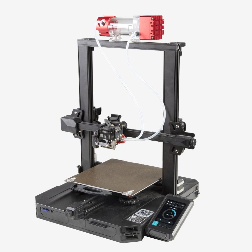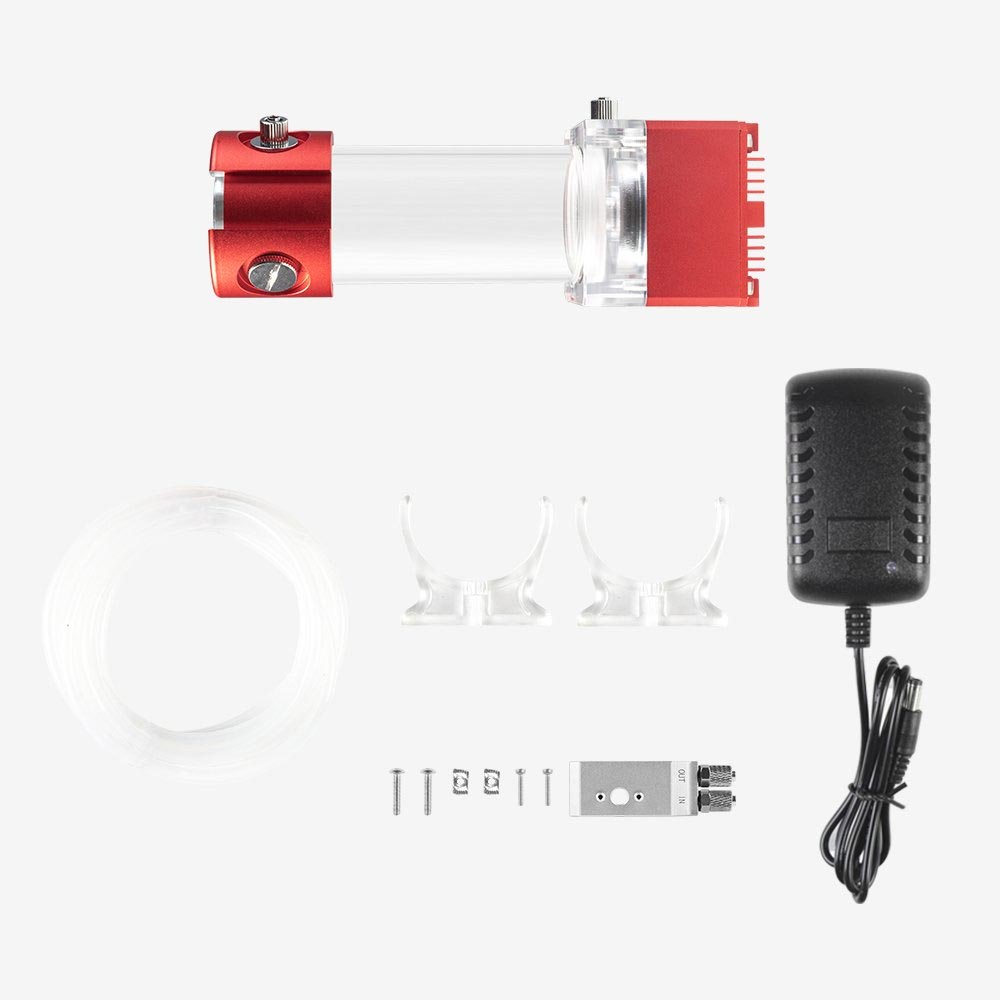 Le kit watercooling Creality CR-W01 permet de refroidir par eau l’extrudeur d’une imprimante 3D. Ce premier modèle du genre est compatible avec l’extrudeur Sprite Pro qui peut atteindre 300°C. Pour réduire le bruit de fonctionnement, mieux refroidir l’extrudeur et allonger sa durée de vie, le kit water cooling CR-W01 intègre une pompe silencieuse qui s’occupe de faire circuler l’eau dans le circuit fermé.