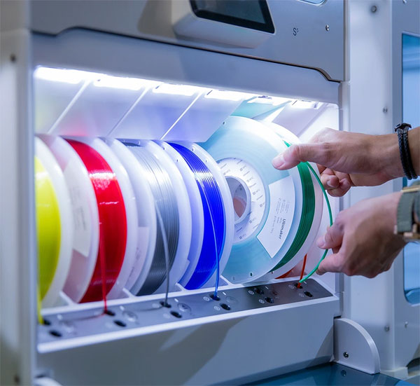 La chambre Ultimaker Material Station peut stocker jusqu’à six bobines au lieu du support d’origine qui ne prend en charge que deux bobines au maximum. De plus, ce caisson maintient une température idéale et contrôle l’humidité des filaments pour un usage optimal. Le chargement du filament est automatisé et permet donc une production plus importante et moins de temps d’interruption pour remplacer les bobines.
