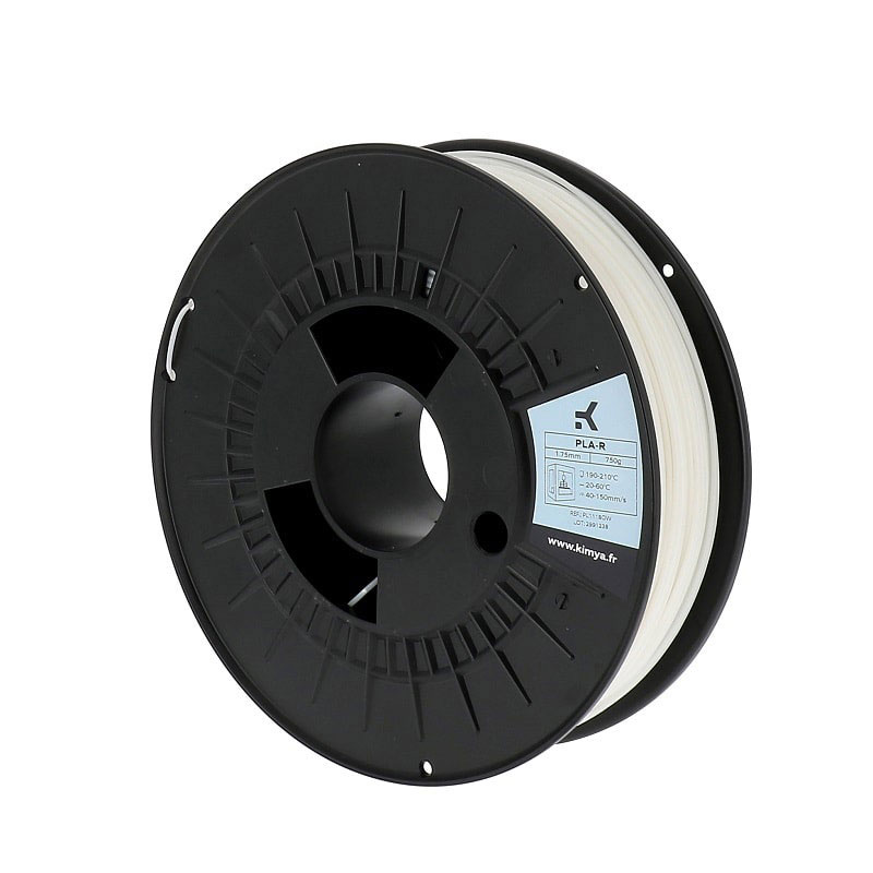 Le fabricant français Kimya propose plusieurs types de filament PLA, entre autres du PLA-R recyclé en France. Le PLA-R Kimya est disponible aux diamètres de 1.75 et 2.85 mm en bobines de 750 grammes, et uniquement en 1.75 mm pour un conditionnement de 2.2 kg par spool.