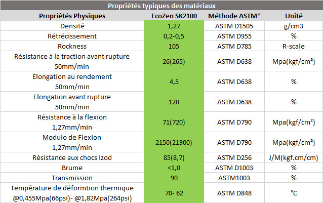 Les propriétés du filament PETG MATERIALZ ECOZEN SK2100 de CompoZan sont les suivantes.