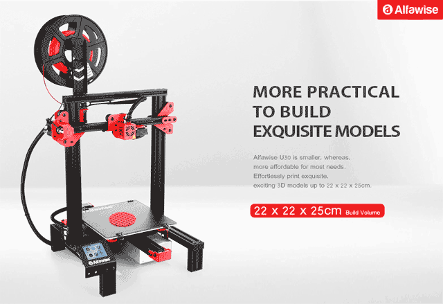 L’Alfawise U30 est affichée à environ 180€, soit 80€ de moins que la U20, avec pour principale différence le volume d’impression.