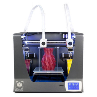 L’imprimante 3D BCN3D Sigma R17 a l’avantage d’avoir deux extrudeurs indépendants pour des impressions bi-matériaux ou bicolores. Les forces de la Sigma sont aussi d’avoir un écran tactile, un plateau chauffant et une compatibilité ABS, PLA, PVA, TPE (flexible) et HIPS en 2,85mm. Son volume d’impression de 210 x 297 x 210 mm (plateau taille feuille A4) et sa précision de 50 microns en font une machine plug&play très performante, vendue à prix correct.