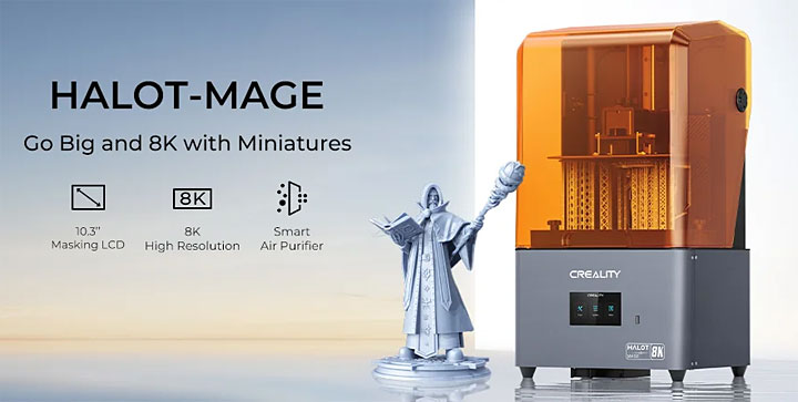 L’imprimante 3D Creality Halot-Mage utilise la stéréolithographie et un écran LCD de 10,3 pouces pour imprimer avec de la résine liquide de norme 405 nm. De résolution 8K, cette nouvelle gamme d’imprimante SLA / MSLA du constructeur a été présentée lors de son neuvième anniversaire. Un autre modèle, plus haut de gamme mais surtout plus rapide, est sorti en même temps : la Halot Mage Pro.