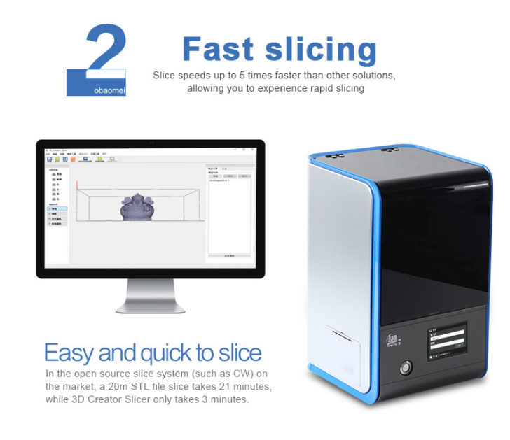 Le trancheur simple et intuitif est capable de traiter un fichier STL de 20Mo en seulement 3 minutes.