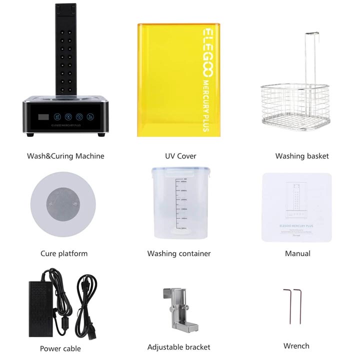 Le wash and cure Elegoo Mercury Plus est une solution 2 en 1 pour nettoyer et finaliser la polymérisation de la résine liquide d’une impression 3D SLA / MSLA. Complément idéal des Elegoo Mars 2, Mars 2 Pro, Mars 3 ou Saturn mais aussi des machines à résine liquide d’un autre constructeur (Creality Halot-One ou Longer Orange 30, par exemple), la Mercury Plus diffère de la Mercury X. Le modèle “X” était composé de deux boitiers distincts tandis que la “Plus” est une seule machine pour les deux opérations à réaliser, le “wash” et le “cure”.