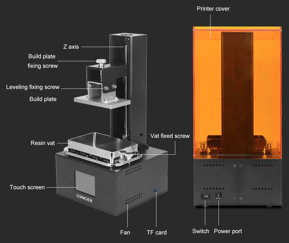 L’imprimante 3D Longer Orange 10 sert à faire ses premiers pas en SLA. On vous a déjà longuement présentée la Longer3D Orange sur le blog à l’occasion de son succès fulgurant sur Kickstarter. En plus de son tarif très attractif à moins de 200€, cette imprimante SLA a de quoi séduire. Elle s’appuie sur un écran LCD dont la résolution 2K permet de solidifier la résine par couches de 47,25 microns. Elle dispose d’un bac de 120 x 68 mm pour une hauteur de 170 mm. Le volume maximal d’impression est quant à lui de 98 x 55 x 140 mm.