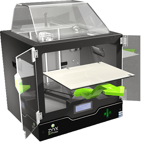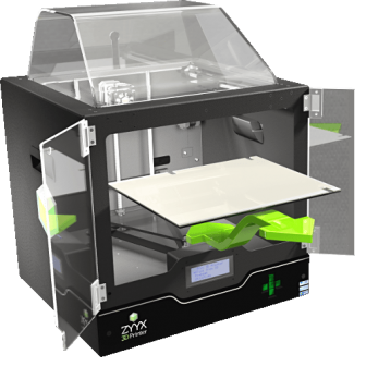 L’imprimante 3D ZYYX+ dispose d’un caisson fermé qui permet à la fois de limiter l’émission de particules toxiques et de maintenir une température constante pour des impressions 3D sans warping (déformation) et tout en silence. Son plateau amovible en verre offre un volume d’impression maximum de 265 x 225 x 195 mm. L’épaisseur minimum des couches est de 50 microns tandis que la vitesse maximum peut atteindre 200 mm/s. La tête d’impression dispose d’un ventilateur facilement amovible qui facilite les opérations de maintenance.