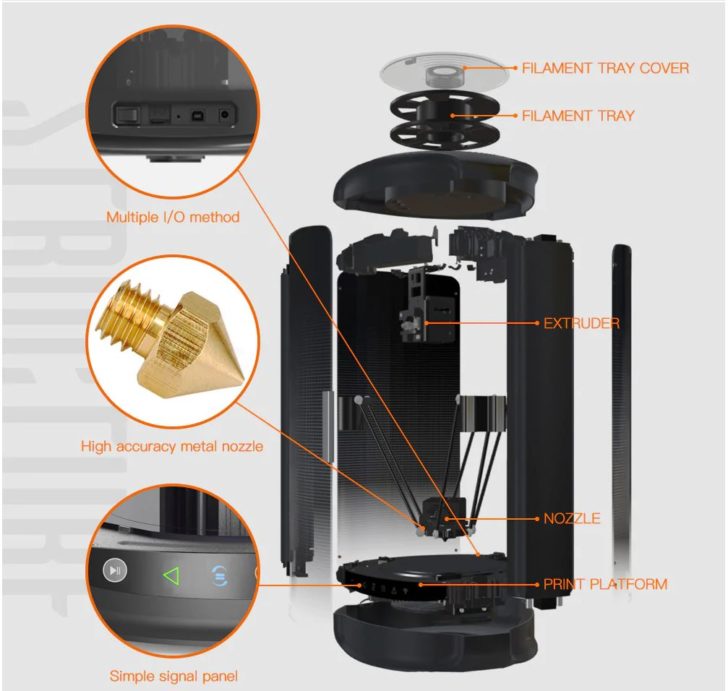Avec une carte mère BIGTREETECH Gen V1.0 pour piloter les moteurs, le constructeur chinois (filiale de Dedibot semble-t-il) promet des impressions fiables, précises et sans peau de saumon ! L’imprimante peut être pilotée en Wi-Fi depuis un ordinateur, une tablette ou un smartphone. Il est également possible d’utiliser le lecteur de carte SD et le “One-button printing”.