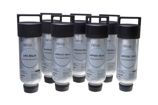 Un système permet de remplacer rapidement la résine pour imprimer avec d’autres matériaux / différents types de résine liquide. Des résines compatibles 405 nm, le standard du marché. Sont conseillées les résines de chez Henkel, BASF et Keystone : xPro410, xCE, xABS3843, xPP405, xPEEK147 et KeyModel Ultra pour un usage dentaire.