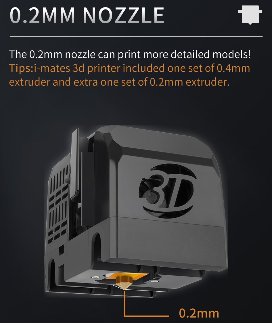 Pour des impressions de qualité supérieure, en plus de la classique buse en 0,4mm, Qidi Tech fournit un modèle 0,2mm.