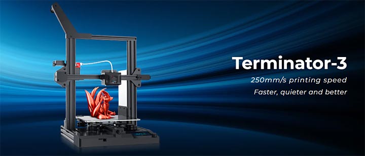 L’imprimante 3D Sunlu Terminator 3 (T3) affiche sa vitesse d’impression comme principal argument : 250 mm/s au maximum en mode “Fast print”. Le volume proposé par la T3 est de 220 x 220 x 250 mm, ce qui la place en concurrence de la série Ender-3 de Creality.