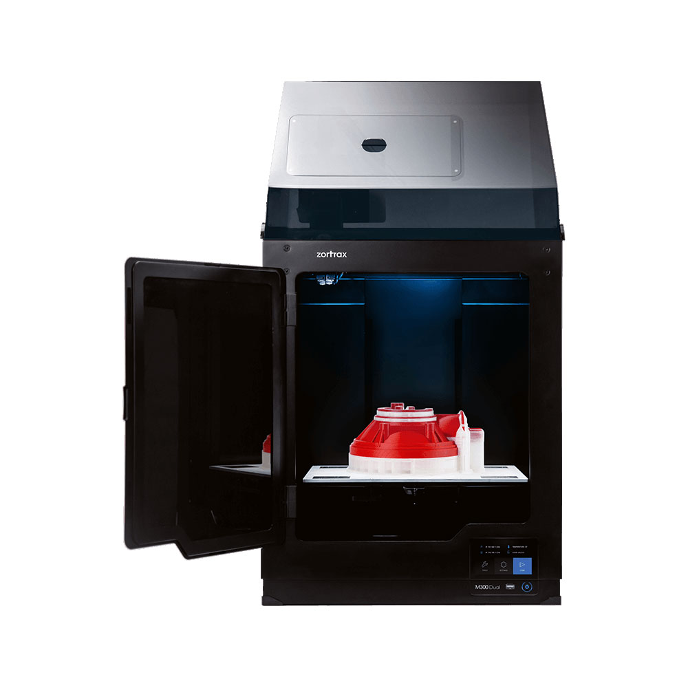 L’imprimante 3D Zortrax M300 Dual est l’évolution double extrudeur de la M300 du constructeur polonais. Trois ans après la M300 à extrusion simple, la Dual apporte logiquement la combinaison des matériaux et/ou des couleurs lors de l’impression. Le volume de travail est important (26,5 x 26,5 x 30 cm) et le support du PVA permet les tâches avec ce filament soluble. Deux buses qui utilisent la technologie Zortrax LPD Plus (Layer Plastic Deposition Plus) et qui acceptent les filaments tiers. La calibration automatique simplifiera l’utilisation de la machine. La résolution d’impression est comprise entre 150 et 300 microns et la température d’extrusion grimpe à 310°C, autorisant l’utilisation de l’ABS (filaments Zortrax Z-ULTRAT PLUS).