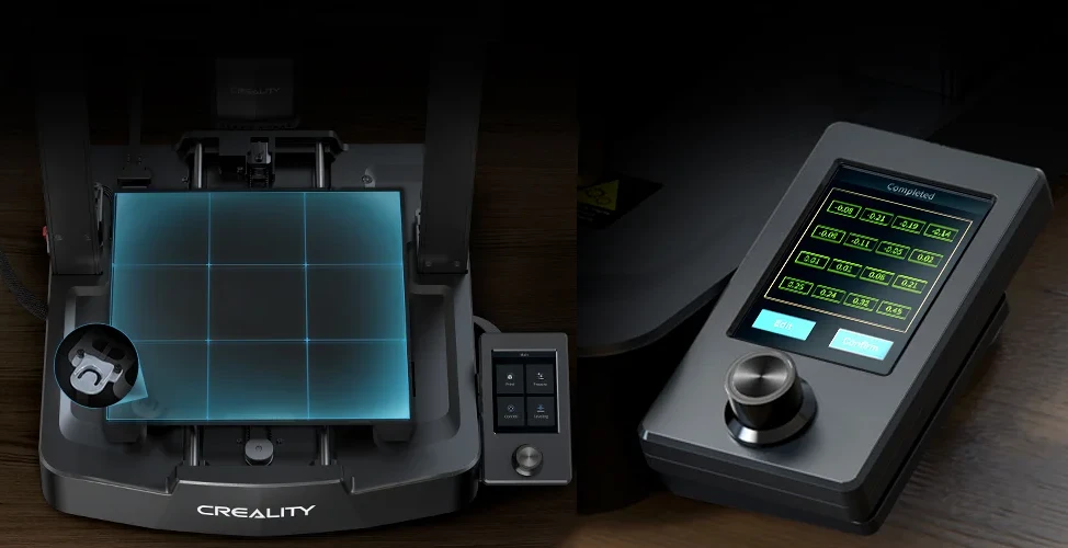 Le nivellement automatique est une fonction depuis longtemps implémentée dans les imprimantes 3D FDM, même les plus basiques. Avec la V3, Creality retire les molettes de réglage du plateau pour tout laisser gérer au CR Touch et son capteur de pression afin de définir le Z offset.