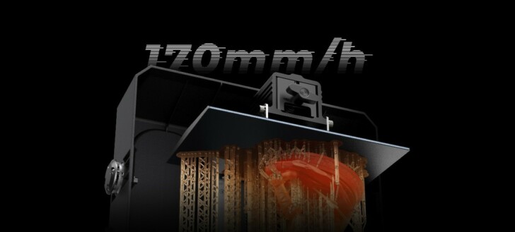 Pour atteindre une telle vitesse, Creality a développé un procédé baptisé “Agile Dynax Motion System”. Ce dernier repose sur un puissant moteur à boucle fermée (1300 Nn de couple) qui permet de déplacer le plateau en à peine une seconde pour passer à la couche suivante, sans bruit ni vibration communiqués au double axe Z. En parallèle, pour réduire la force d’accroche au fond du bac, le film FEP a été remplacé par un film à trois couches qui diminue de 35% l’adhérence.