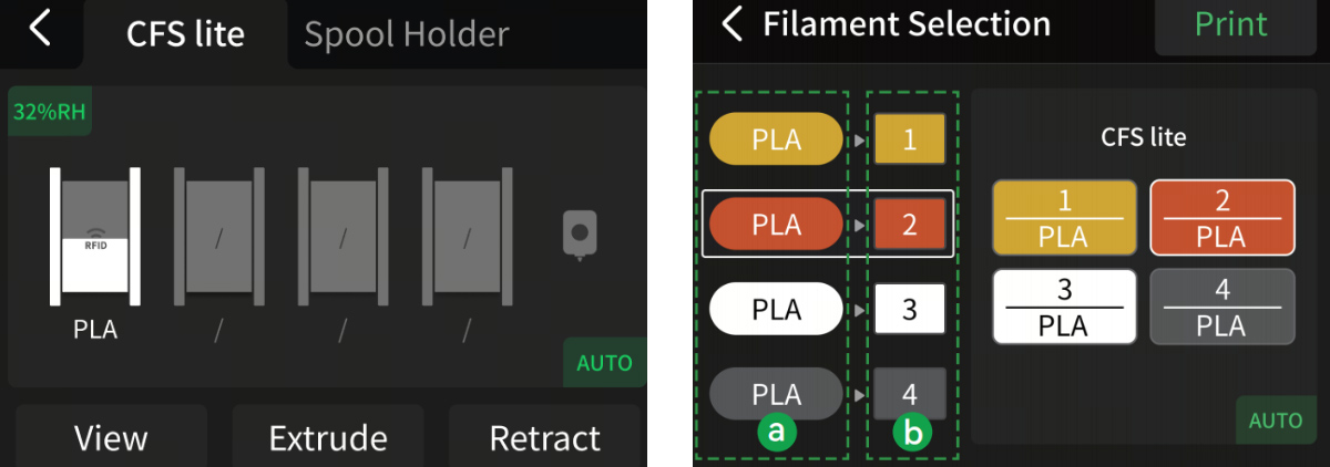 Le CFS Mini n’est pas un système pour mélanger les couleurs entre deux bobines. Son usage sera donc limité aux impressions qui demandent beaucoup de filament ou pour finir une bobine sans intervention manuelle pour changer de rouleau.