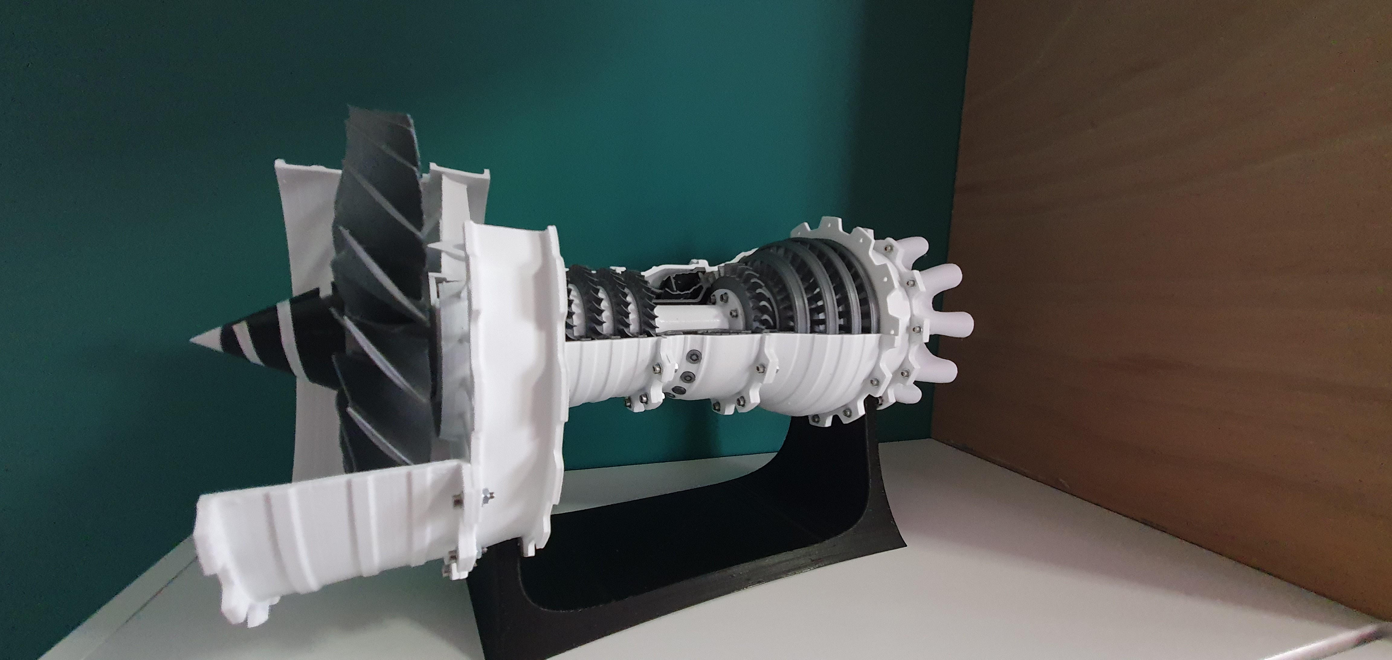 Projet Turboréacteur d'avion ✈️ Filament blanc et gris aluminium SOVB 3D Modèle Thingiverse Imprimante Tenlog 3D et Creality3d Tenlog TL-3D PRO et CR10S-PRO ************************ Temp buse : 190° Temp lit : 60° Infill : 20% Projet de 2 semaines Mon Instagram : @alumine_print