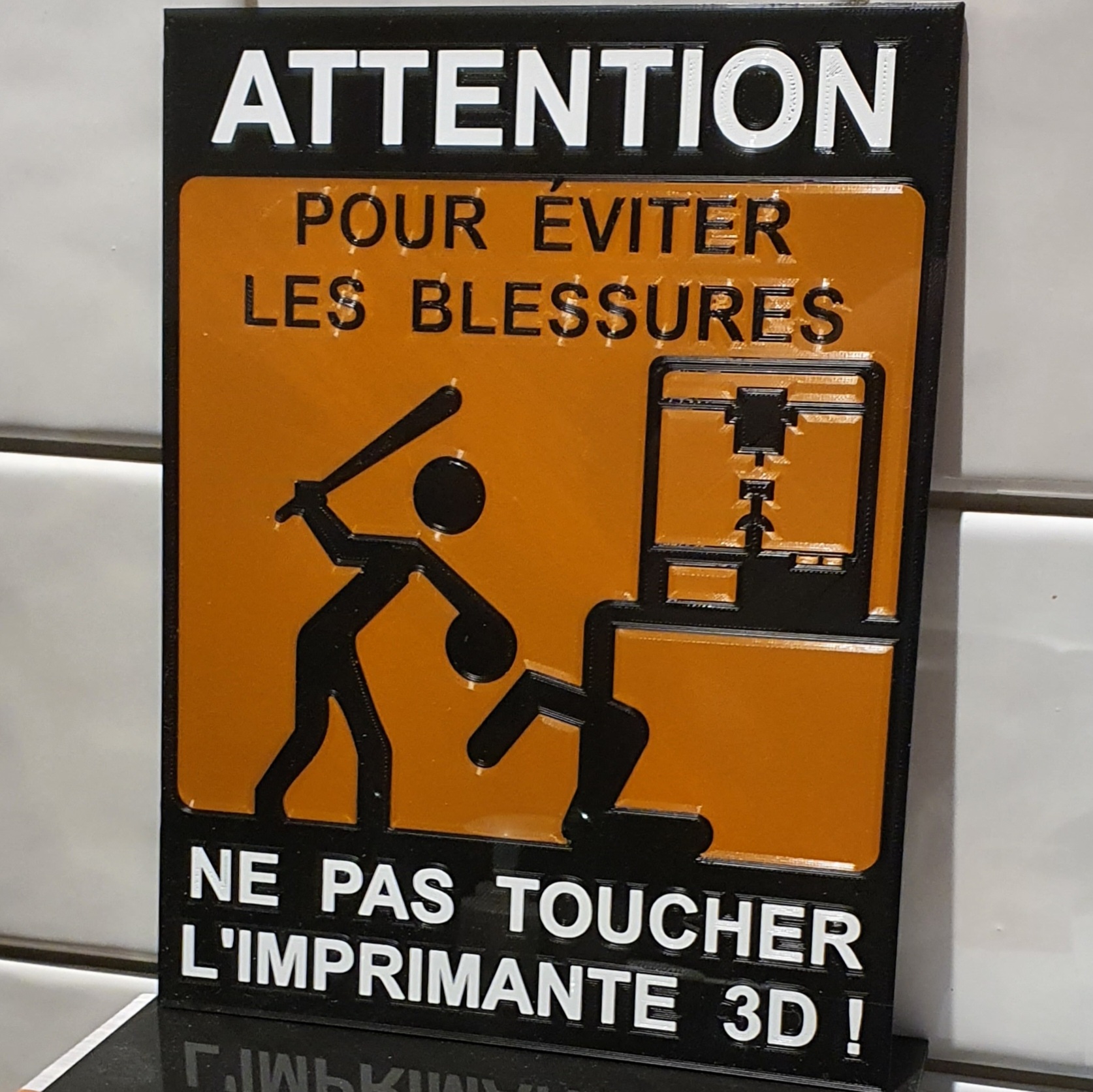 Voir image précédente. Sur celle-ci on voit l'aspect "glossy" dû à l'impression à l'envers sur plaque de verre, parfait pour un panneau d'affichage.