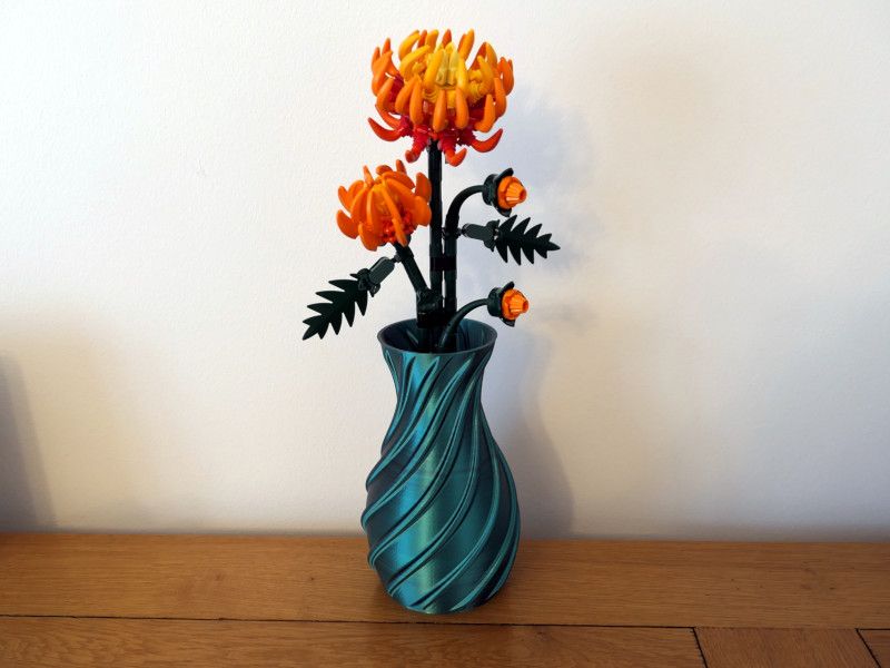 Imprimante 3D MicroDelta Rework  -  Filament Silk PLA+Dual Color Sunlu Black Green  -  Casimages  -  Spiral vase by JJ76 on Thingiverse  -  Chrysanthemum LEGO