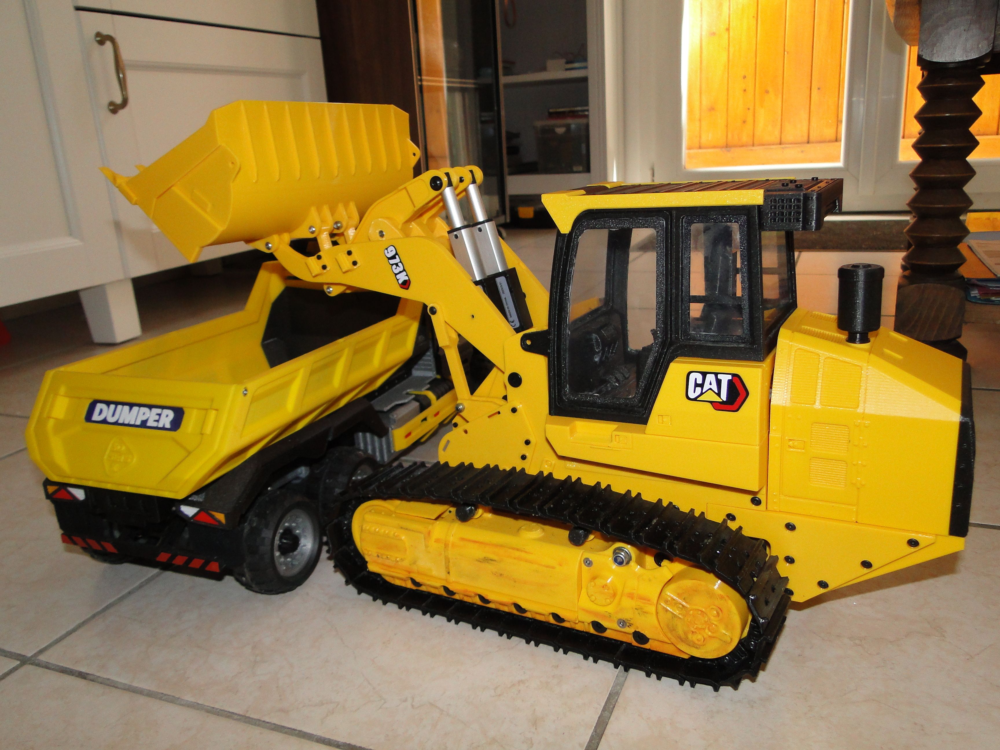 vap38 1 758 Posté(e) Mai 11, 2025 Bonjour à tous encore un véhicule TP j'ai enfin finie le montage du chargeur CATERPILLAR 973 . le test c'est bien passé le plus difficile c'est de programmer la télécommande. l'équipement électronique demande beaucoup de réflexions pour gagner de la place. J'ai placé un bruiteur Diesel; tout fonctionne très bien. Le tuyau d'échappement fait office d'interrupteur général, c'est plus facile que de tout démonter ! Voici la vidéo du premier test https://youtu.be/9RDMwdaUv5A A+