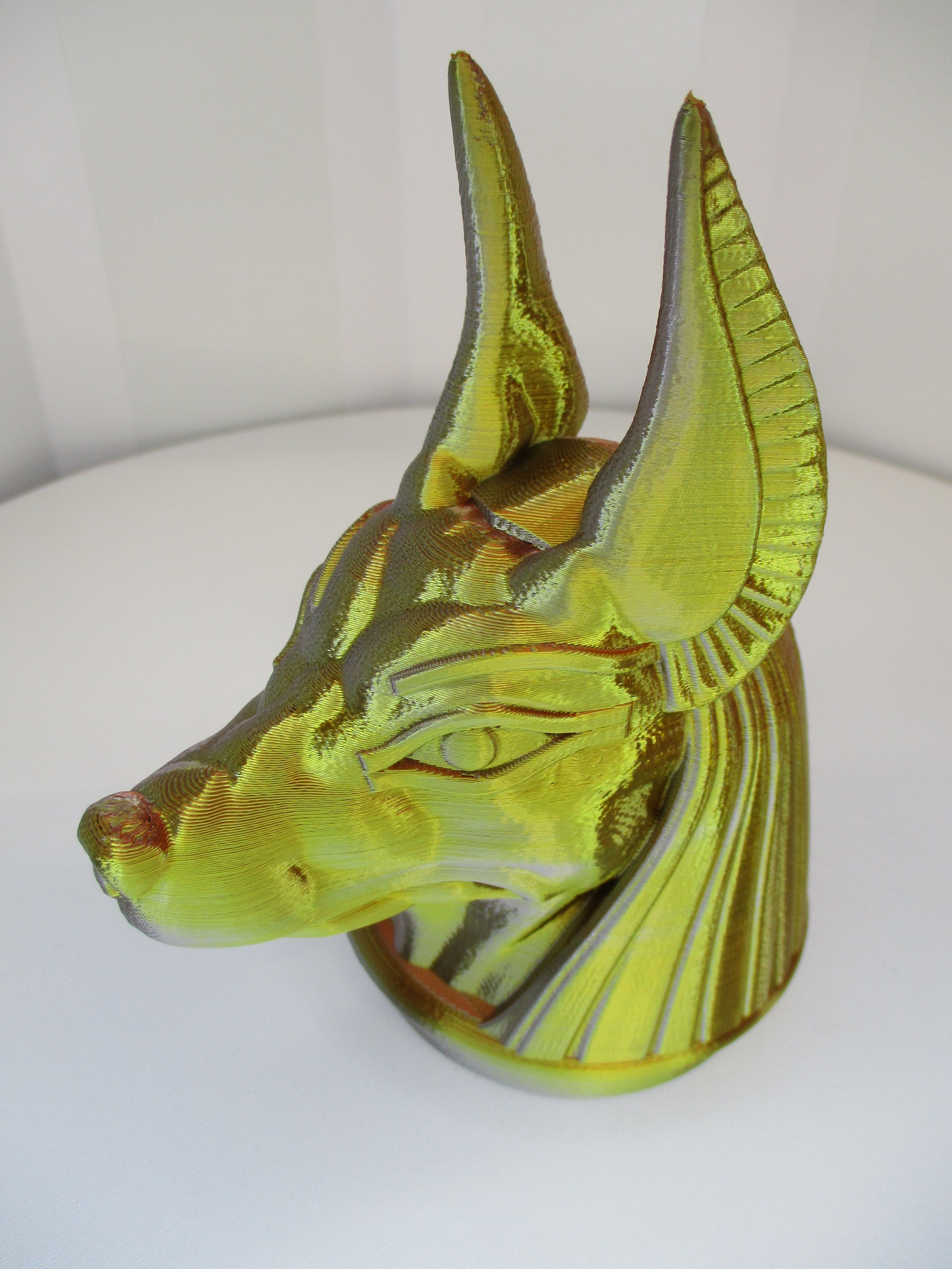 Alain D. 430 Posté(e) Mai 17, 2025 Imprimante : JG MAKER Magic Filament / Diamètre / Marque / Type : PLA / 1,75mm / Geeetech / Or - argent- cuivre (soyeux / silk) Hauteur de couche : 0.15mm Dimensions de l'objet : hauteur = 130mm Fichier : https://drive.google.com/drive/folders/1sZGyfPuxcfI9v8vOB3qsXCOQuj2TWqqV?usp=sharing Nom : CANOPIC_JAR_ANUBIS_TOP_PLEIN.zip Pour completer l'urne déjà imprimée plus tôt, très beau rendu...