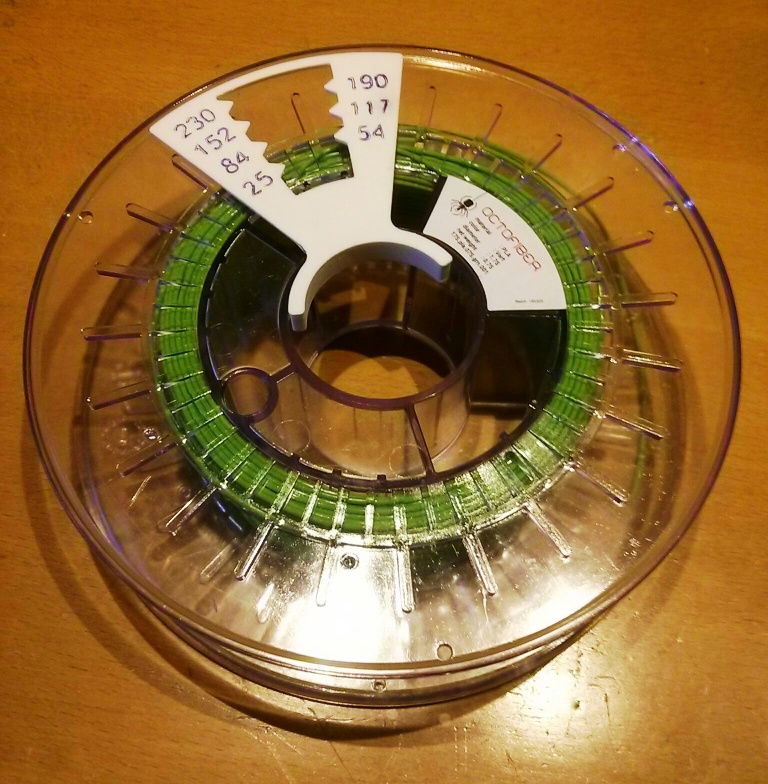 J'ai encore un peu de mal à estimer le métrage restant sur mes bobines d'Octofiber, alors je me suis fait une petite jauge.