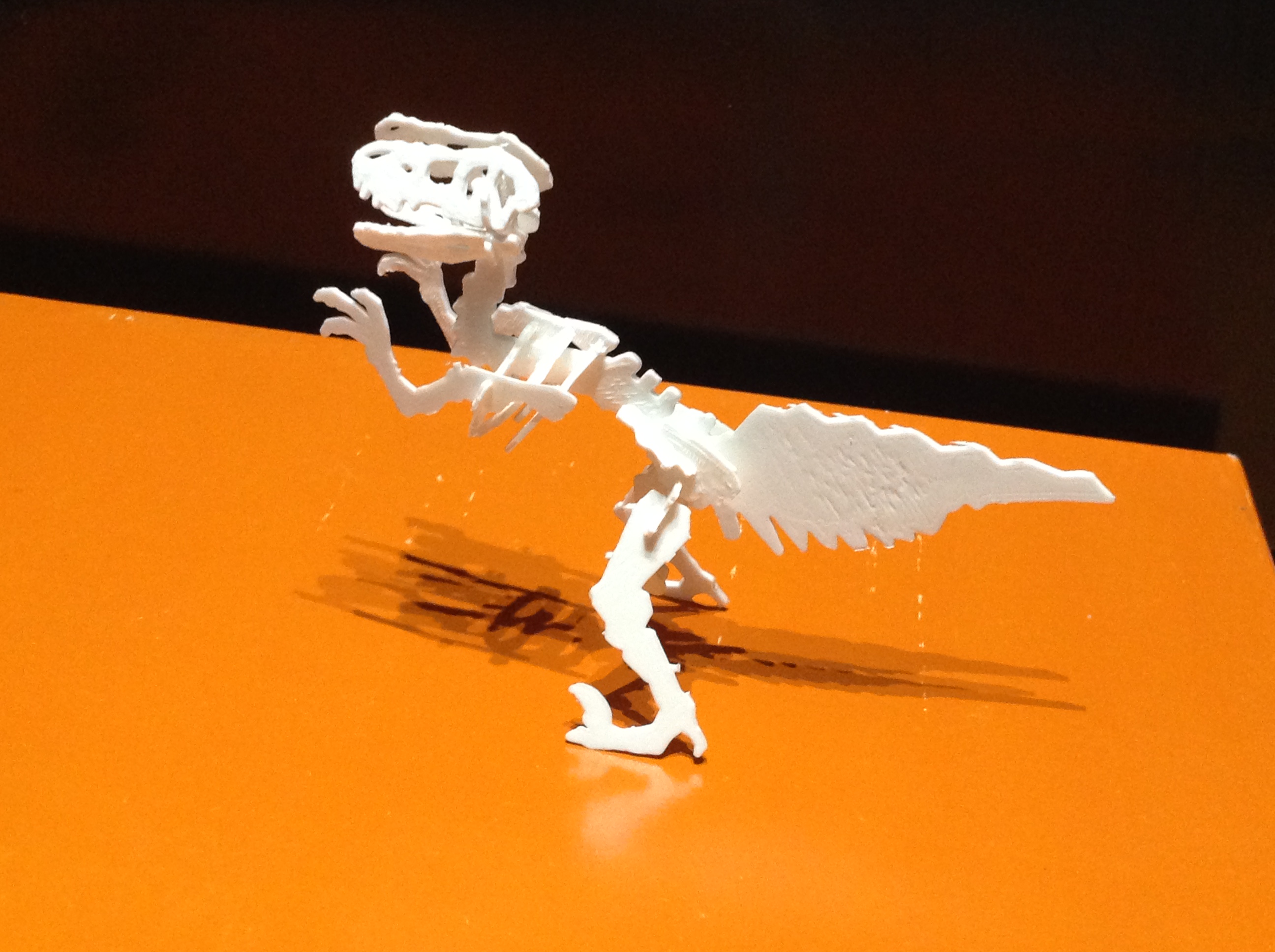 Montage d'un dinosaure 3D suite à son test d'impression après un réglage d'offset.