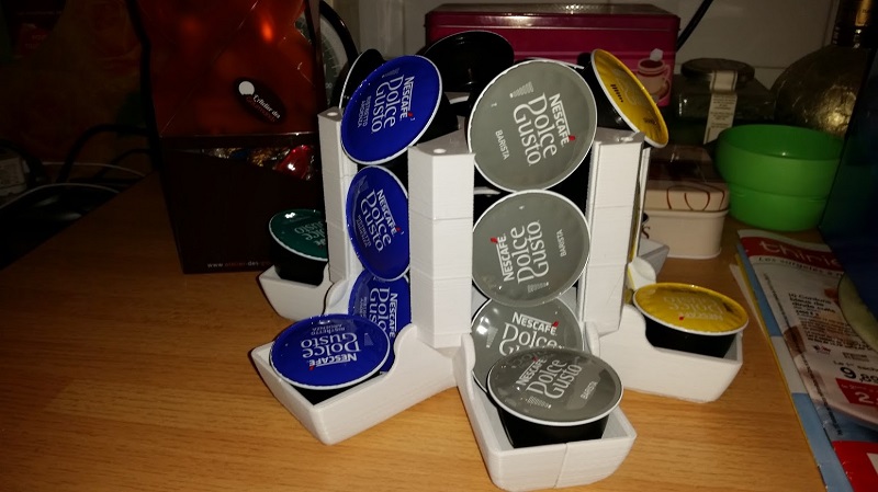 avec les capsules, deux étages en cours d'impression pour terminer le distributeur.