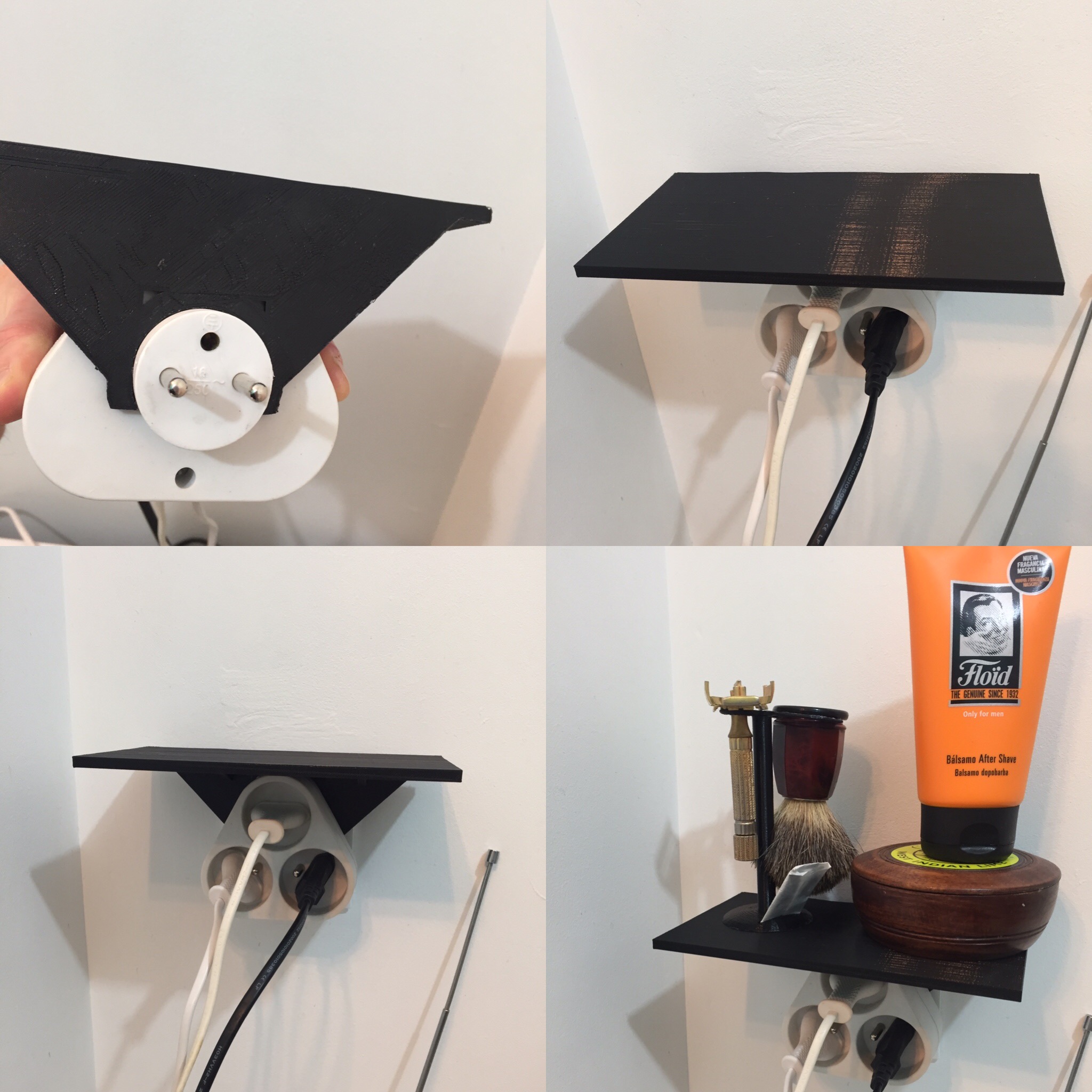 petite tablette venant se "clipser" sur une multiprise afin d'y mettre un peu de mon fourbi. Aucun besoin de la coller sur un support