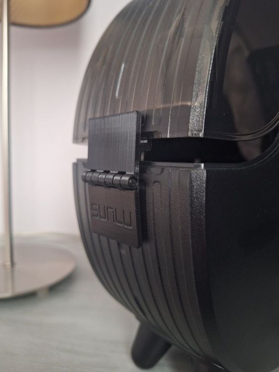 24. Salut Par ces temps pluvieux, rien ne vaut de modéliser et d'imprimer Aujourd'hui une petite boite pour ranger des gouttières dentaires pour remplacer celle qui était cassée. Modélisation dans Fusion. Diamètre 80 mm et épaisseur 20 mm. Avec un fond sous forme d'insert. Je me suis bien amusé lors de la modélisation avec la charnière et surtout pour faire l'insert à partir du fond de la boite. Imprimée en PETG HF noir de chez Bambu Lab avec insert en TPU 98A bleu de chez Fillamentum. L'insert est collé au fond de la boite. L'axe est un simple morceau de filament coupé et chauffé pour qu'il colle au boitier (Soudé). Il manque les aimants pour maintenir la boite fermée (En attente de livraison). A+ JC