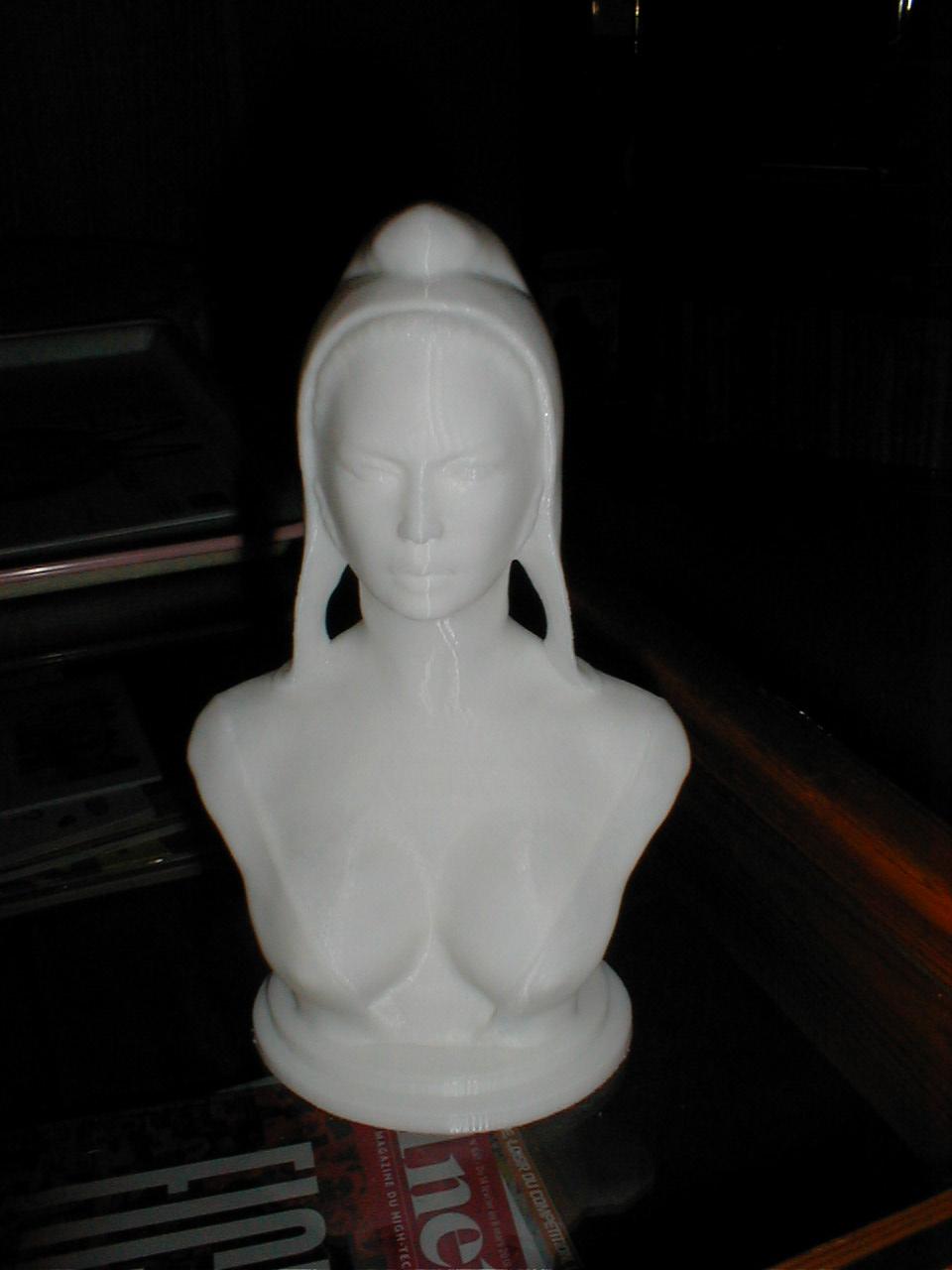 Un petit up du sujet avec mon 1er test avec une buse 0.25mm. J'ai utilisé ma hotend Chimera, avec du support (mais pas soluble pour ce test). Le modèle, un Link de Zelda : https://www.thingiverse.com/thing:2326589 Echelle 1:1 (la tête fait 10mmm + les cheveux) Les photos sont moches, mais à cette taille sans objectif macro, c'est compliqué ! En plus le filament (Ariane Plast métal violet) qui est très beau en vrai n'aide pas pour les photos..). Je précise que j'ai arraché un bout de son oreille gauche en le manipulant pour les photos, c'est tellement fin , à la base elle était comme celle de droite... De même, j'ai juste enlevé les supports, je n'ai pas poncé ou nettoyé plus qu'avec la pince coupante, il doit y avoir moyen d'avoir un meilleur finish ! Pour l'échelle avec une pièce de 10 centimes : Le détail des narines (uhuh) et des yeux (plus contrasté et marqué en vrai) : Et des stries dans les cheveux : Dans l'oreille que je n'ai pas abimée on voit aussi les stries du design ^ ^ J'avais essayé avec une buse de 0.4mm, mais les mèches de cheveux et le nez ne ressortent pas aussi bien qu'avec une buse de 0.25mm (le résultat n'est cependant pas "immonde"). Pour le reste, voici les settings utilisés : - augmentation de 0.2mm de la distance de rétraction (pour compenser la plus forte pression dans la buse dûe au diamètre plus petit à extruder) ; - augmentation du nombre de rétraction (à chaque layer change + avant le périmètre extérieur) pour limiter aussi la pression ; - couches à 0.08 (je ferais un test à 0.05 pour voir si il y un réel plus) ; - vitesse d'impression de 35mm/s ; - 5 périmètres, pas d'infill ; - un brim + support en "tours" (d'ailleurs je me demande comment surélever la tête pour que les premières couches ne "surchauffent" pas trop dû à la chaleur réverbérée par le hot bed, le haut de la tête est un peu moche) ; - réduction de la température de -5°C pour ne pas "surchauffer" les couches entre elles Je suis en train de tenter une tête d'alien (https://www.thingiverse.com/thing:579768) à l'échelle 1:2 pour voir ^ ^1 point