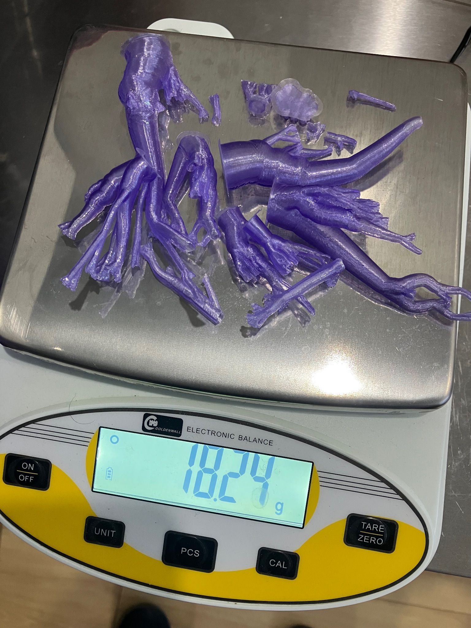 bonjour un petit exercice de comparaison à l'occasion d'une impression au lieu de ramener du boulot à la maison, j'ai ramené du loisir au boulot la théorie qui nous donne 18.09 gr de support (il s'agit d'un Pla Jayo translucide ayant une densité de 1.25 ) et 100.70 pour le modèle et la pratique la précision semble excellente petite précision : la balance est une véritable balance de précision du labo de la boîte ou je travaille3 points