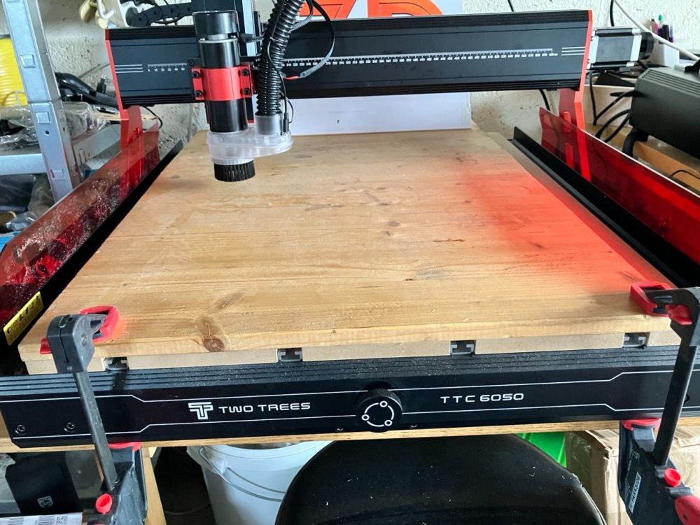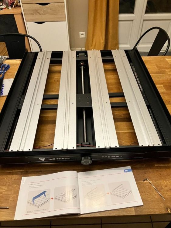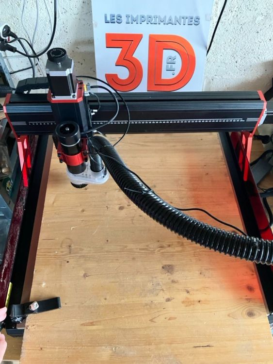 La broche vendue avec la machine a malheureusement rendu l'âme, j'ai donc monté le router : https://twotrees3d.com/products/two-trees-30000rpm-wood-router-for-cnc-machine Cela permet d'augmenter la vitesse des déplacements. Passons au montage de la machine : Une chose intéressante, ils ont intégré une tête de graissage automatique, pour les rails linéaire. : Une fois le montage fini, elle fonctionne, avant, arrière, haut, bas. Mais je reste surpris, il manque des câbles non connectés, mais aucune trace dans le manuel, les end stop et le détecteur de sécurité. Pour le montage, je vous conseille de regarder la vidéo du constructeur, en effet, il y a des connectiques très bien cachées. :-) Voici une fois monté, mais on peut voir que si on souhaite utiliser toute la surface de travail, il y a des serres joint afin que les grandes pièces soit maintenue.1 point