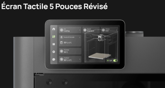 Oui, on peut le mettre à droite. @pascal_lb C'est un écran tactile de 5" qui contraste avec l'écran bizarre que Bambu Lab avait mis de la P1S, celui de la P2S est réactif, intuitif et complet mais sans plus, par exemple il n'y a pas la vitesse d'impression mais est ce vraiment utile ? ce qui me manque aussi , c'est la valeur en Z ...1 point