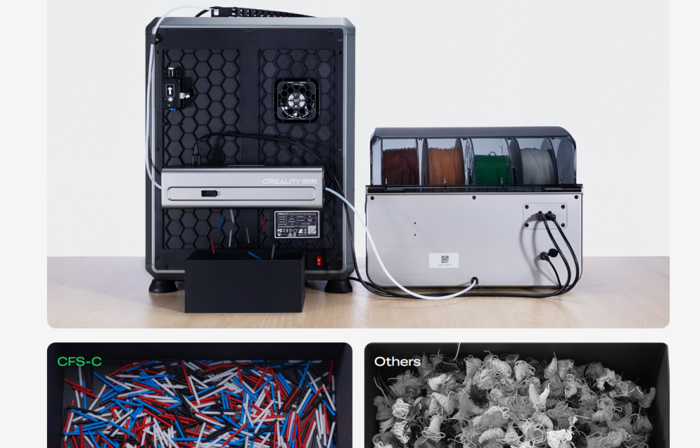 Trouvé à l'instant : https://www.creality.com/products/cfs-c-creality-filament-system Il s'agit donc d'un système qui externalise le cutter. Présenté comme une manière de réduire le gâchis, j'y vois surtout une solution plus simple pour upgrader les séries K1 sans avoir à modifier les têtes d'impression. D'ailleurs, non, ils le présentent pas comme une réduction de gâchis, c'est moi qui vais un peu vite en besogne. Mais ils mettent en avant que la "purge" se fait en dehors de la machine et donc que ça permet de garder l’intérieur tout propre. Et voilà (un bout de) la notice : https://manuals.plus/m/2a5dfc820743e4740ac7bc109bcc9605ee3b2aef3e684f5f15389bf0c69739e04 points
