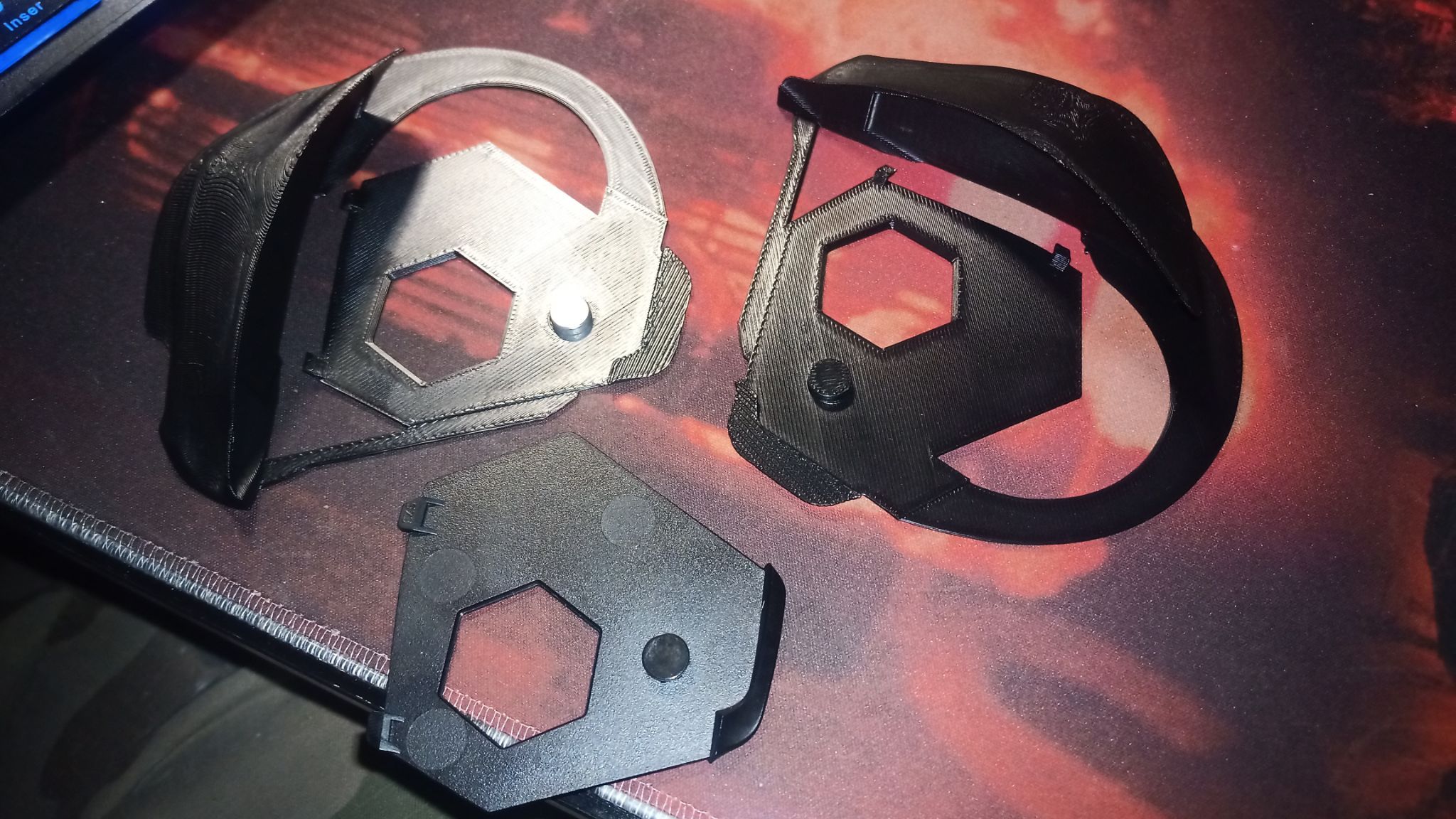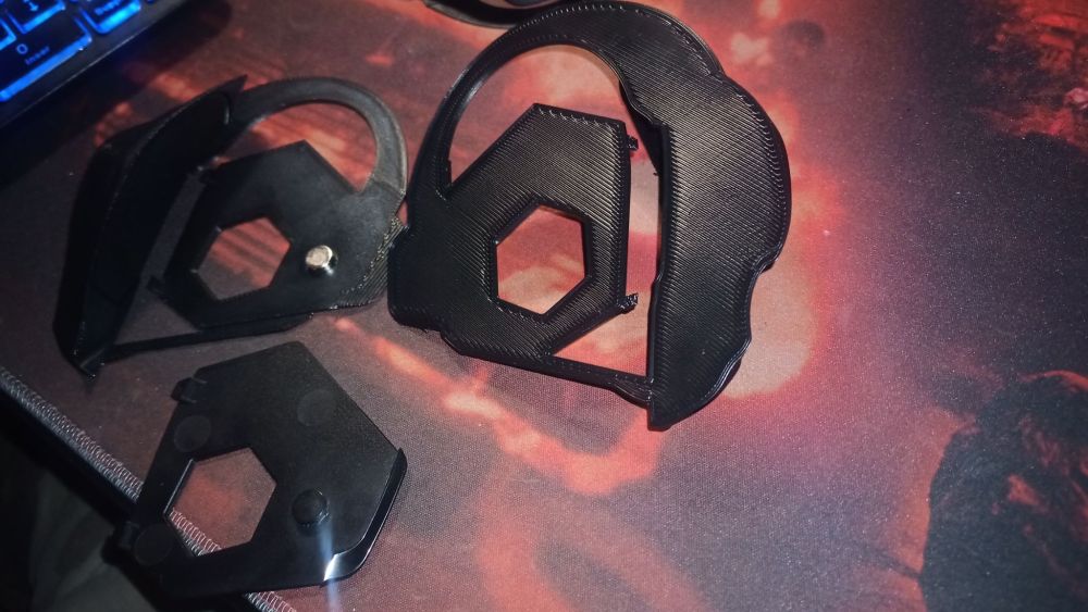 Petit retour après plus de 6 mois de jeu avec le Cyborg, bin c'est top, j'aurais du mal à m'en passer (j'ai même le reflexe de mettre la main dessus au lieu du clavier hors jeu mais la comme c'est pas programmer pour c'est pas top...) Du coup j'ai aussi investi dans une souris un peu mieux que ceux à 20 balles d'amazon, j'ai pris une logitech G502 HERO (à 40€ sur le site de logitech donc très abordable), je n'ai pas pu m'empêcher de la customiser pour vraiment l'adapter à la taille de mes doigts (j'arrivait pas à avoir accès facilement à tout les boutons). Une platine pour pouvoir reposer l'annulaire et l'auriculaire et 2 extension pour les 2 boutons supp du dessus. La platine n'est pas de moi mais je l'ai modifiée car elle était trop épaisse en dessous et le capteur optique avait des ratés, j'ai aussi mis un aimant comme sur celle d'origine (je prendrais des photos démontée quand j'imprimerais celle pour mon mari), les extensions de boutons sont juste collé au double face, je vais y apporté quelques modifs (un ou deux millimètres par ci et par la) juste pour que cela soit vraiment adapter à mes doigts. Edit : En bas celle de la souris, à droite fichier d'origine que j'ai trouvée et à gauche celui que j'ai modifiée pour mettre l'aimant à la place de la petite "bite", la base est aussi moins épaisse de 0.5mm pour que le capteur ne merde pas. Imprimé en PETG sur un plateau lisse type miroir.4 points