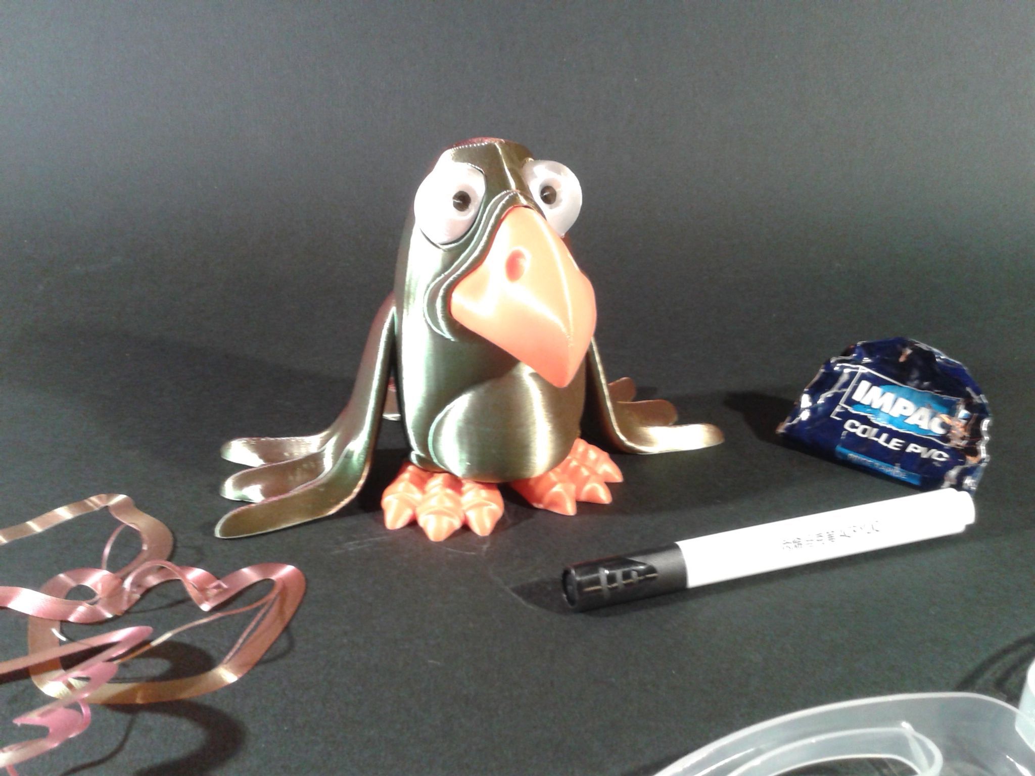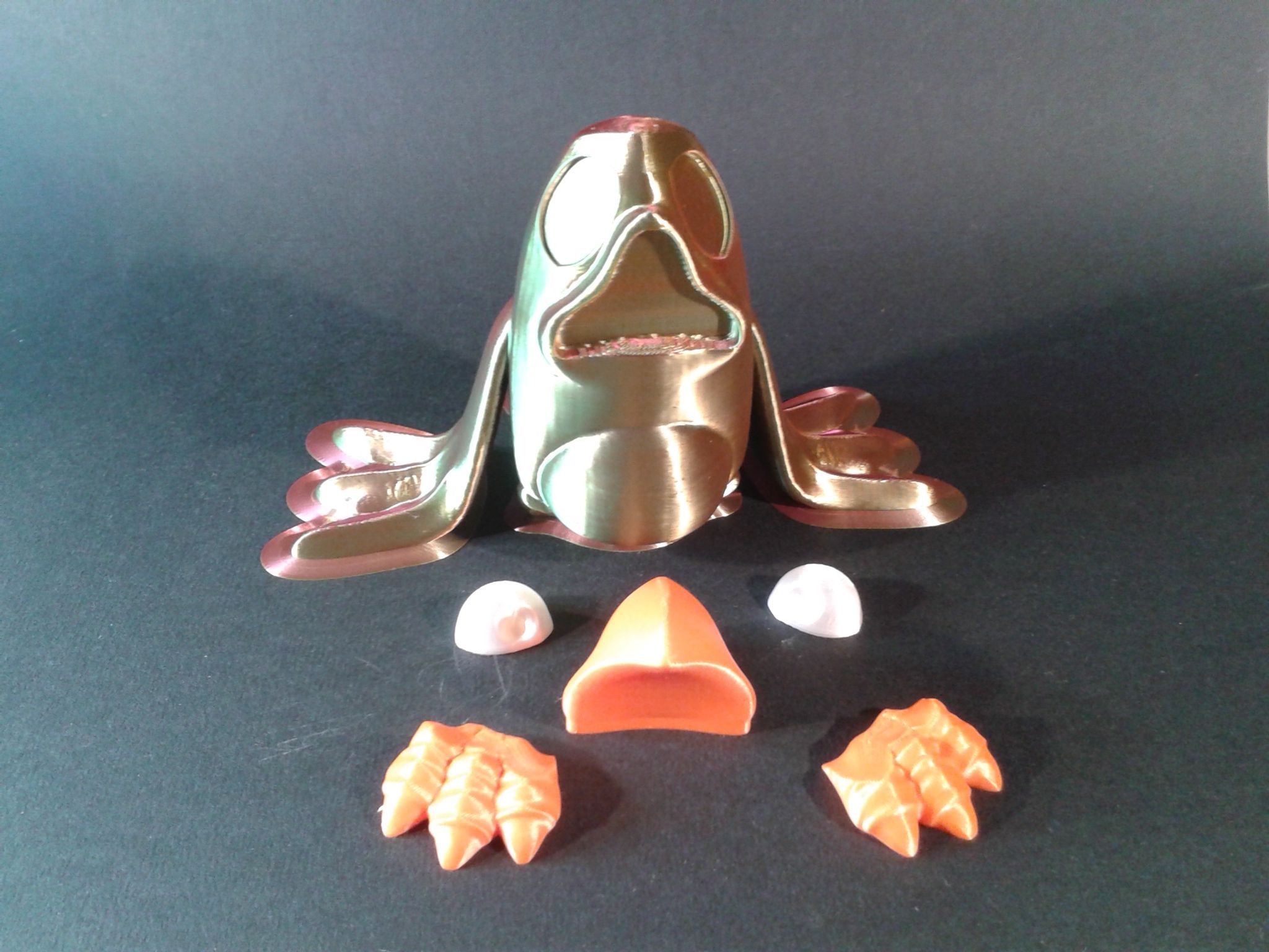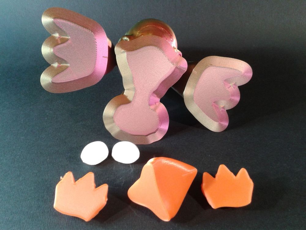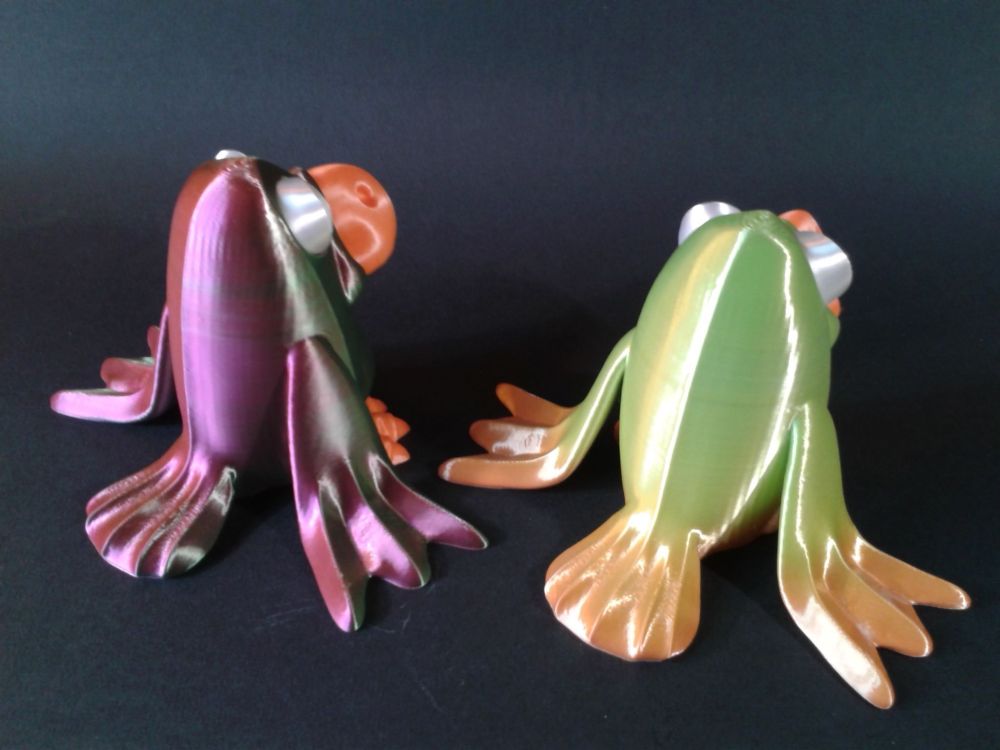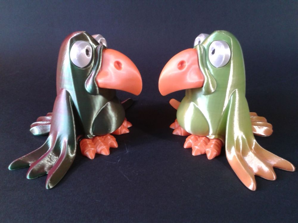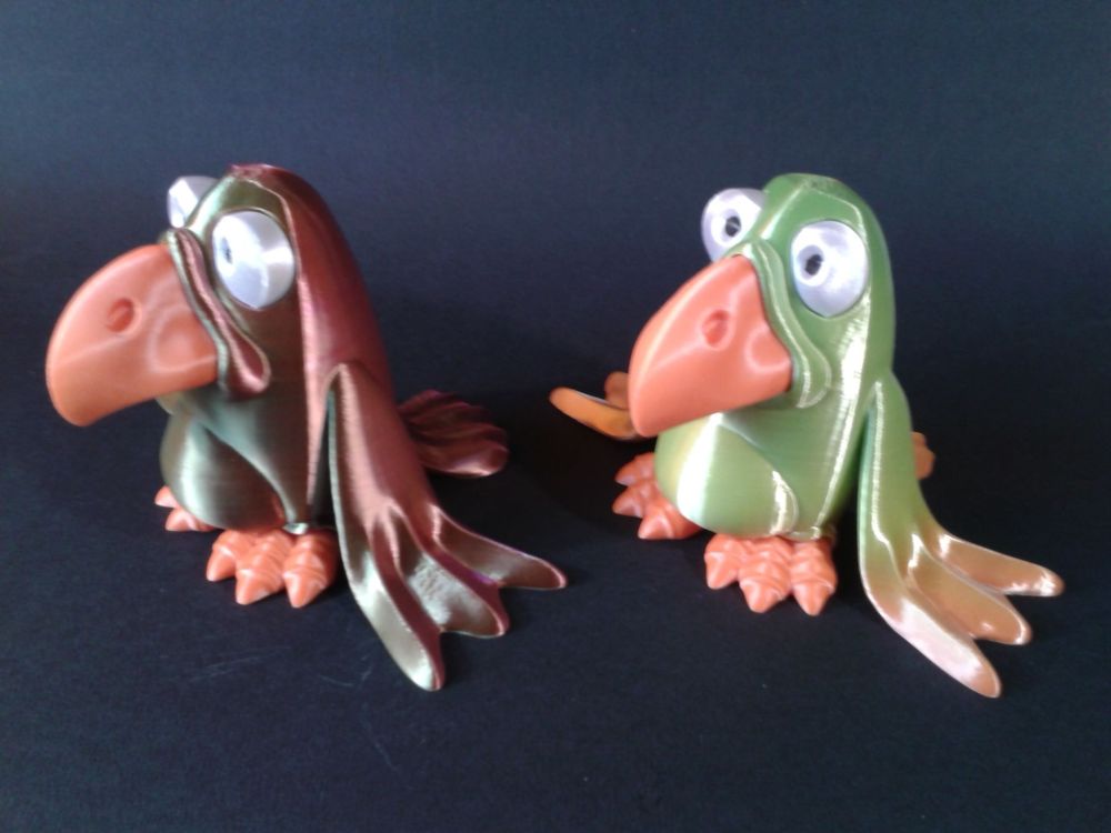 Alors alors ? Bon moi j'ai triché, car je n'ai pas respecté les recommandations et je l'ai imprimé avec une hauteur de couches de 0.2 mm au lieu de 0.1 mm spécifié. Après collage et une touche de feutre acrylique noir pour le noir des yeux Filaments utilisés : "Gold Green Rose Silk PLA Sovol", "White Silk PLA Anycubic", "Rosehip Soleyin Ultra PLA" Et histoire qu'il ne s'ennuie pas tout seul, j'en ai même fait un second. (corps en "Rainbow CR-Silk PLA Creality") Encore merci a @didoffpour ce sympathique modèle. Et avec un peu d'avance, de bonnes fêtes de fin d'année à tous.2 points