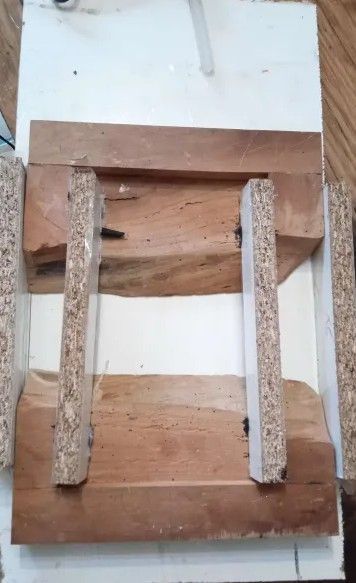 bon cette fois petit montage pour couler en bois et époxy, un 1/2 jeu de backgammon, aucune idée du rendu final si cela sera bien, si cela va fonctionner. le bois et de l'orme ... une vieille planche mal taillé, toute gauche donc pas trop utilisable dans l’état. je vais couler de l’époxy j'ai délibérément fait des rebords plus large et plus haut. je mettrais à jour le fichier d'usinage en fonction. sur la gauche après surfaçage j'aurais l'emplacement des charnières. sur la droite , l'emplacement des pions et dés au centre les usinages pour les 6 lignes de jeux en haut et en bas1 point