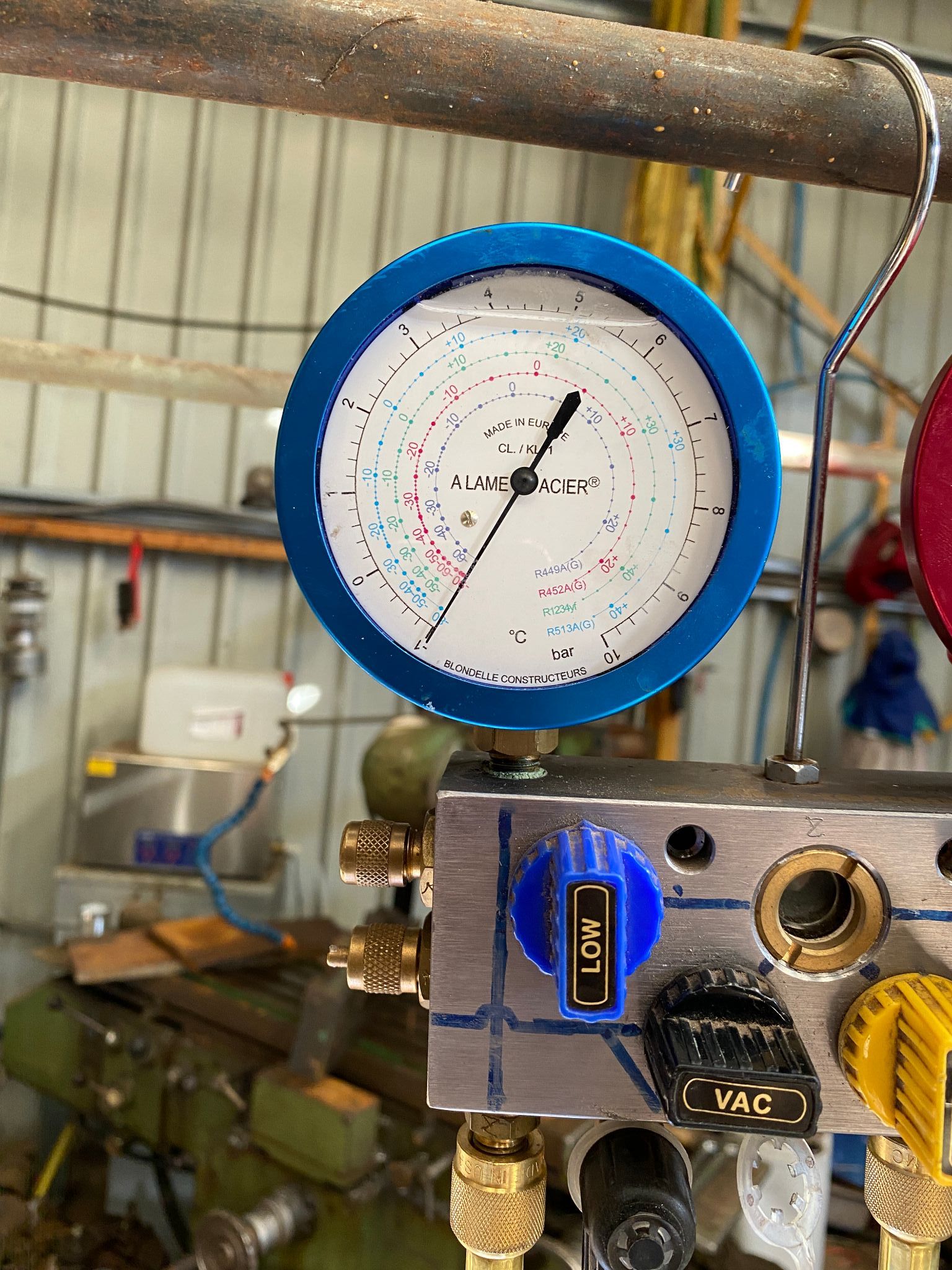 bonsoir, la cuve etait au soleil, ce que je veux dire: une fois le vide obtenu, bien que la cuve était vide, l'eau vaporisé sortait, donc 6' plus un temps (qui reste encore a déterminer) ce qui est bien c'est qu'ont la voie donc ce sera facile de déterminer ce temps, ce que je ne pourrais pas vraiment savoir , c'est le temps que mettra l'eau a sortir du fil ??? j'ai un hygrométre je le mettrait dedans ... je viens de replacer le manifold dessus, j'ai pas perdu (soudure/joints étanche) c'est déjà ça j’oubliais: c'est facile de voir sans manifold si cela perd: les 2.6mm de creux sur la tôle.1 point