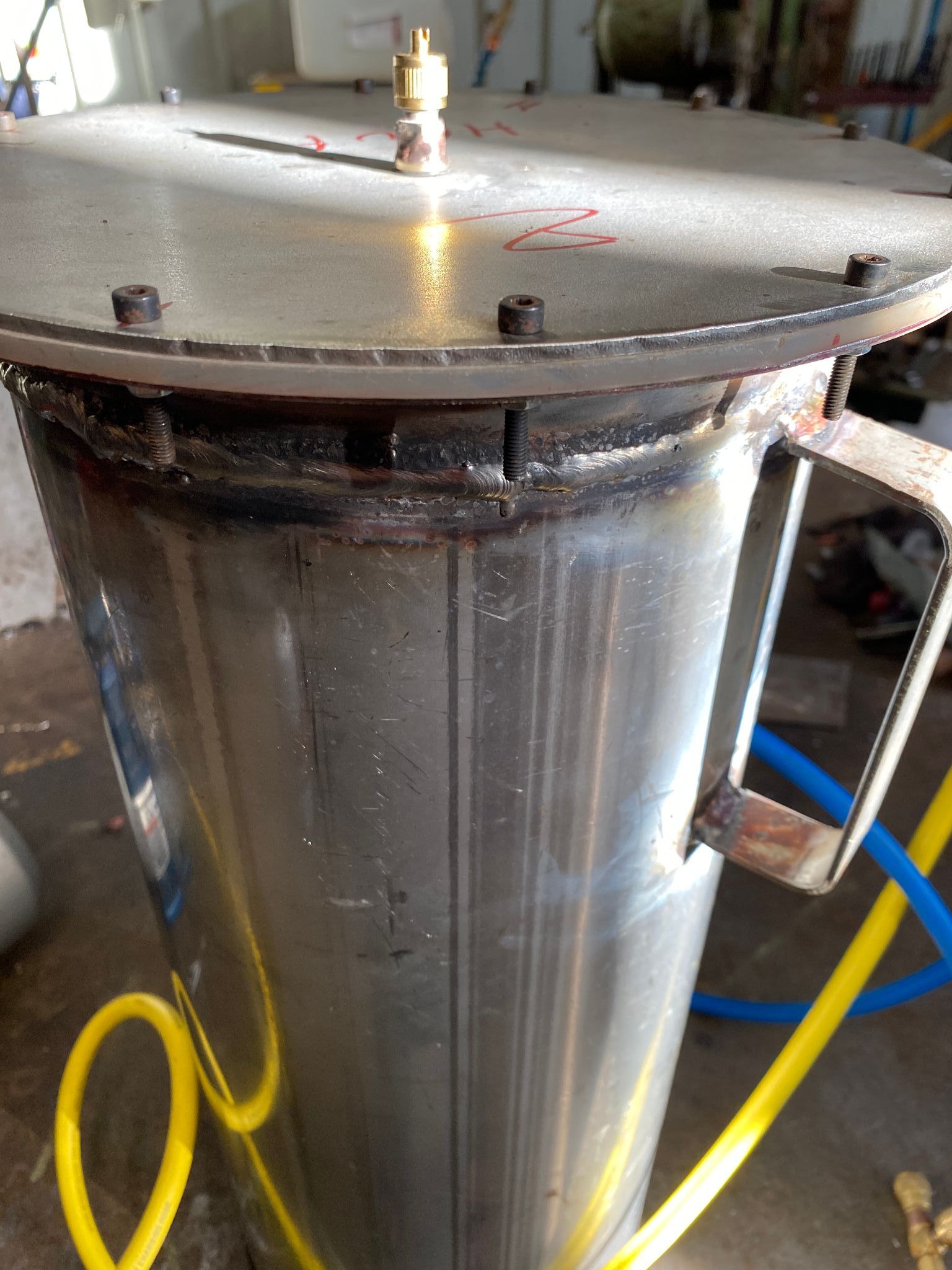bonjour, j'ai fini l'autoclave a bobine, la fermeture (plat inox l316 de3mm)ce pli de 2,6mm ! il faut 6 minute pour atteindre le vide de mon volume, mais la vapeur continu de sortir... comme je n'est pas encore assez de bobines suite plus tard... j'ai une autre idée, mais trop $$$ pour celui qui n'en a pas déjà un: un déshumidificateur d'air pour peinture au pistolet (voiture) je ne sais pas a combien il descend ? (en humidité ?) la il suffi de faire passer de l'air dans un "bac" entrée/sorti comme l'eau de l'air a été congelé, l'air qui en sort est supposé ne plus en contenir (d'eau).3 points