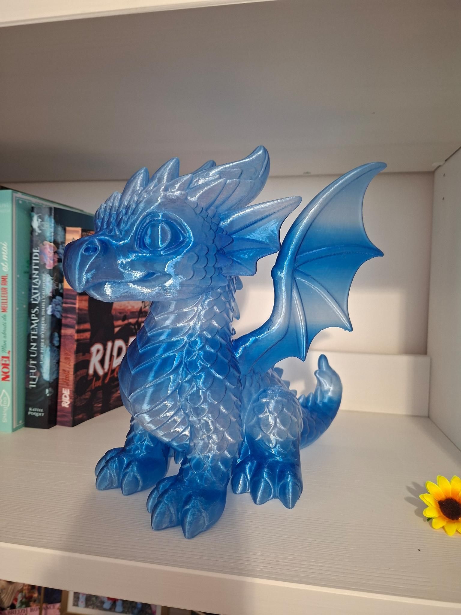 J'ai reçu un magnifique PETG Gradient Blue/White que j'ai mis un peu (beaucoup) de temps à ouvrir mais qui donne un résultat très satisfaisant. Ici un modèle que j'ai tenté en très grande taille, avec 0% de remplissage pour profiter un max de la transparence. Quelques petits trous, sans grande surprise, mais ce gros bébé de 24cm de haut pour moins de 200gr :1 point