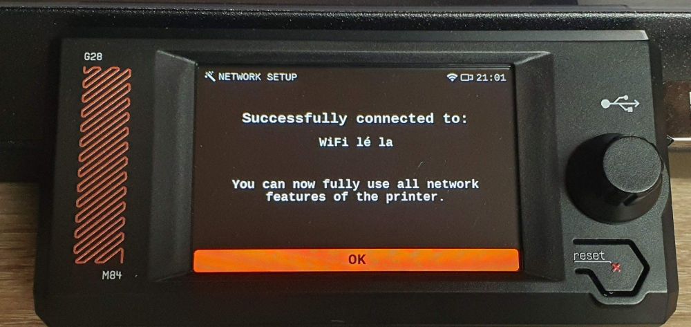 Salut, Alors j'ai creusé cette histoire de caméra parce que j'étais pratiquement sûr d'avoir vu qu'elle était capable de faire du live. Et en effet, elle sait le faire ! Notez le petit "LIVE" en haut à gauche. En fait l'astuce consiste à activer le mode RTSP, tout simplement. Alors simplement oui et non dans ma config réseau particulière. L'imprimante est actuellement connectée sur mon Wifi invité, donc j'ai du temporairement connecter mon téléphone sur ce wifi et couper l'isolation entre les guest pour que ça fonctionne. A savoir si vous aimez isoler les IoT chez vous. J'ai testé le flux vidéo sur PC avec VLC et à travers un VPN, en plein écran l'image est de bonne qualité (full HD), on voit plein de détails. Il y a une petite latence ~1-2sec à cause des buffers de VLC, on peut les réduire et ça devient pratiquement du temps réel. En résumé, si vous êtes en réseau local ou connecté chez vous via un VPN, vous aurez le flux vidéo temps réel. Si vous n'avez pas de connexion réseau direct alors vous passez par le cloud via PrusaConnect et aurez un snapshot toutes les 10sec au mieux. Manque plus que le timelapse automatique et on sera bon.3 points