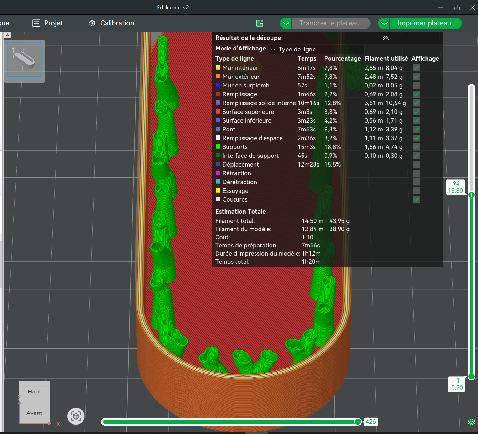Salut la team, donc voilà le résultat après un nombre d'essais incalculable, je suis parvenu à réaliser ma pièce en PPA-CF. paramètres utilisés sur la bambu lab H2S : -Le plateau "smooth noir tout lisse", ultra propre, dégraissé à l'alcool puis à l'acétone. merci pour l'info "PPAC" -un bon coup de 3DLAC, puis la température a 120° -Toutes les avances à 40 mm/s, je sais l'impression dure une plombe mais c'est comme ça. -La buse en 0.4 durci flux standard nickel, température recommandée par le fabricant du filament et de 280° MINIMUM. Non, je suis descendu à 250°, résultat nickel. Je pense que l'on pourrait aller jusqu'à 240° mais à tester. -La chambre a 65° et surtout ne jamais ouvrir la porte, jamais, jamais, jamais. sinon ""warping instantané"" -La bobine de PPA-CF doit être ultra chaude et 70° MINIMUM, puis 24h de séchage et continuer pendant l'impression. INFO importante : le filament est très rigide. Il est recommandé de modifier l'arrivée du fil à l'extrudeur sinon il risque de se coincer.1 point