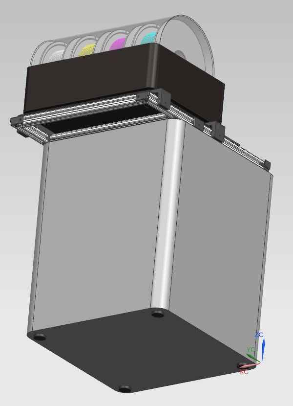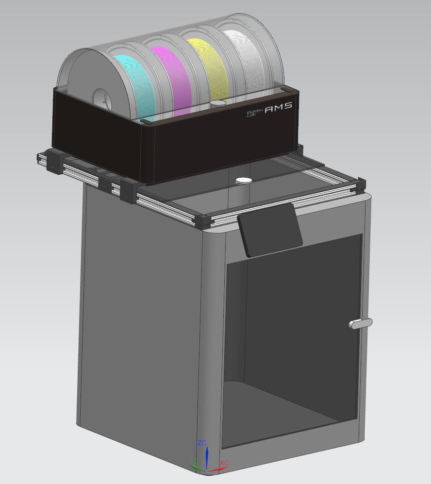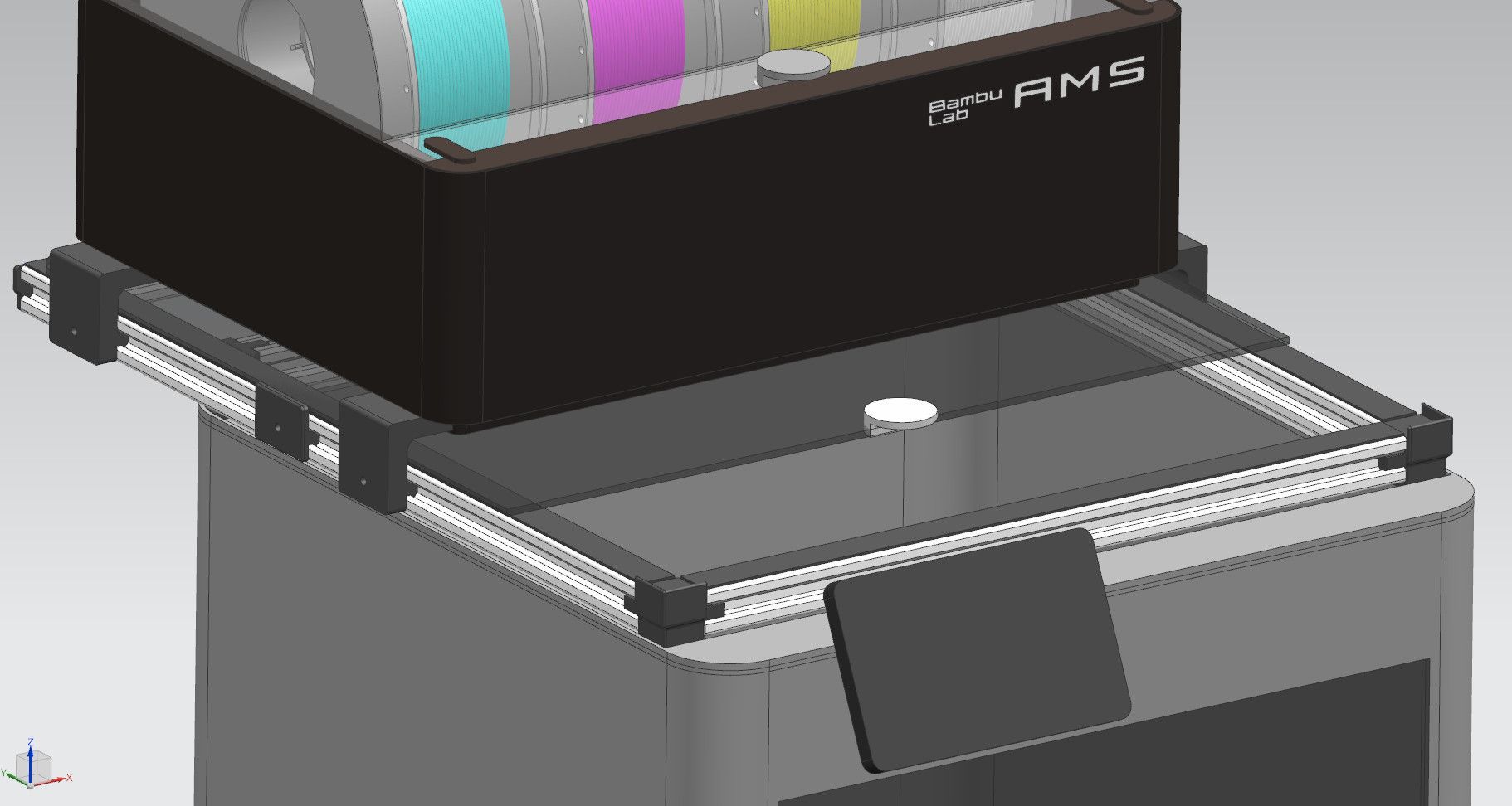 Bonjour , pou info, pour mon besoin personnel, j'ai préféré m'en créer un , juste pour rehausser le verre supérieur , pour éviter le frottement du PTFE sur la vitre. j'en ai profité pour que la vitre puisse coulisser vers l'arrière , et pour que l'AMS puisse bouger individuellement au dessus j'ai réalisé ceci avec des profilés 2020 , et quelques équerres d'angle invisibles , pour rainures T-slot. de la bande en mousse autocollante sur les profilés pour le frottement de la vitre. pas beaucoup de chose à imprimer ; et ça fonctionne bien. un aperçu:2 points