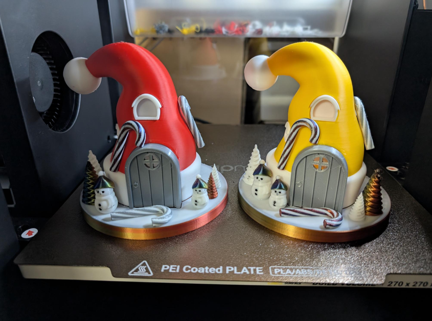 Je vais ici par la suite indiquer les modif ou mod ajouter a ma U1 et si il y a un réel plus. Le premier est un TopHat mis sur Thingiverse par Srin a première vue un utilisateur Coréen de la U1 son TopHat a l'air intéressant. Et surtout cela coutera bien moins que les 150€ en prix promo que celui officiel Snapmaker qui sera dispo que en mai qui plus est. Pour ceux qui chercherais a avoir un PTFE entre leur dryer de filament et le système d'envoi du filament au tête d'impression il y a un mod disponible Pour ma part j'ajouterais probablement une surface flexible Gyrogrip Pro Glacier pour U1, cette surface d'impression a déjà fait ces preuves et a 20€ environs y a pas ce priver Quelques rendu d'impression avec la U1. Attention il ne s'agit pas réellement d'une Hueforge ici car en réalité sur certaine couche nous avons plusieurs couleurs impression en 0.08mm avec le filament snapmaker. Chat colorisé sous SnapOrca en 0.2mm de hauteur de couche, rien de redire a la qualité d'impression toujours avec les profil Snapmaker . Attention on a une fausse impression qu'il y a des irrégularités de couches en réalité on perçoit pas a l'oeil c'est bien plus propre mais mon APN et la lumière exacerbe le rendu. Pour rappel sur la U1 on a 1h52min de temps d'impression pour 27gr utiliser Benchy + tour d'amorçage, en simulation sur la A1 on était a 11h50min de temps d'impression et 154gr avec les profile BBlab par defaut Benchy + tour + purge, et en optimisant on pouvait réduire à 104gr de filament en supprimant la tour et optimisant la purge pour un temps de plus de 11h30 toujours. Aller encore quelques impression multi color de Noel imprimer en plusieurs pièce les chapeaux et socle sont séparable et les sujet on été imprimer a part mais tous les pièce on au moins 2 couleurs. je ne vais pas mettre tous les impressions que je réalise en détail mais pour le moment 0 échec d'impression le seule ennemie que j'ai réellement c'est possiblement l'humidité sur les bobines qui peuvent causé du stringing et donc il est vraiment utile de d'avoir un système de séchage du filament c'est l'un des gros manque de la machine d'avoir un vrai système intégré, y a bien les snapdryer mais je les trouves pas ultra pratique je vais probablement investir dans un Chitu Filapartner E1 ou 2 Creality Space PI Plus d'ici janvier. Aller je change de type de filament, j'arrête le multi couleur pour le moment pour tester l'impression de PETG, je vais imprimer de TopHat pour la U1 designer par le Coréen Srin, et sa tombe bien j'avais en stock une bobine de HS PETG de Jayo que j'avais pas tester c'est chose faite . L'avantage du HS PETG (ou Rapid PETG, ou encore PETG HF suivant les fabricants) c'est de pouvoir imprimer du PETG avec des vitesses élever allant jusque 600mm/s (bon perso je pense pas aller au dessus de 300mm/s pour ce filament, ce le réglage que j'ai choisis d'ailleurs, 250mm/s pour les bords externe et 300mm/s pour les interne et remplissage). J'ai laisser les réglages similaire au PLA avec le profile de base, et j'ai choisi un profil de Filament Snapmaker PETG HF ou j'ai ajuster les temp° par rapport au filament Jayo que j'ai. Cela m'a d'ailleurs permit de trouver un bug sur la U1, si l'on choisir manuellement le type de filament PETG HF sur la U1 en chargent la nouvelle bobine, sur SnapOrca dans device on voit bien la bobine dans la tête mais dans la préparation de l'impression l'extrudeur avec notre PETG HF n'apparait pas, si l'on selection manuellement un type PETG HF et que l'on tranche lors de l'envoi vers la U1 de l'impression impossible de mapper le filament dans l'extrudeur contenant le PETG HF de définit, il y a un warning et on nous indique qu'il a pas de filament de ce type dans les extrudeurs. Pour résoudre le souci (ce qui m'a pris 10 minutes le temps de comprendre qu'il y avait soit un souci de définition sur la U1 soit dans SnapOrca) j'ai du changer le type de filament et le passer PETG HF à PETG sur l'imprimante et la plus de soucis pour lancer mes impressions. J'ai d'abord fait un test sur les plus petites pièces que le projet demande d'imprimer, puis j'ai attaquer les 2 coins arrières gauche et droite. Pour du PETG imprimer a 250-300mm/s je suis plus que ravis du résultat surtout que j'ai 2 angles arrières intègre une zone de surplomb de 3cm j'en ai profité pour faire sur l'un des support arborescent et l'autre ne pas faire de support sur la zone, les 2 pontages ce sont imprimer parfaitement, le pontage support j'ai même été surpris d'avoir des support qui ce retire sans laisser de trace et facilement en plus avec un rendu ultra propre, alors je n'ai pas ajuster les offsets de support qui généralement ne sont pas 100% les même que pour du PLA. J'ai pas encore tester d'imprimer des support en PLA sur une impression PETG ou l'inverse car je n'ai pas d'impression nécessitant réellement cela pour le moment a réalisé, mais j'ai regarder ce que l'on peu facilement faire via le slicer et cela n'est pas compliqué, il faut indiqué le filament utiliser en support, passer l'offset Z de l'interface de support a 0 (comme il n'y pas de fusion entre PLA et PETG autant en profité), et par contre pensé a indiqué dans le gestion de la tour de purge que l'on utiliser un des 2 filament en contour et l'autre en remplissage car les faire ce superposer pourrait poser des soucis je pense.2 points
