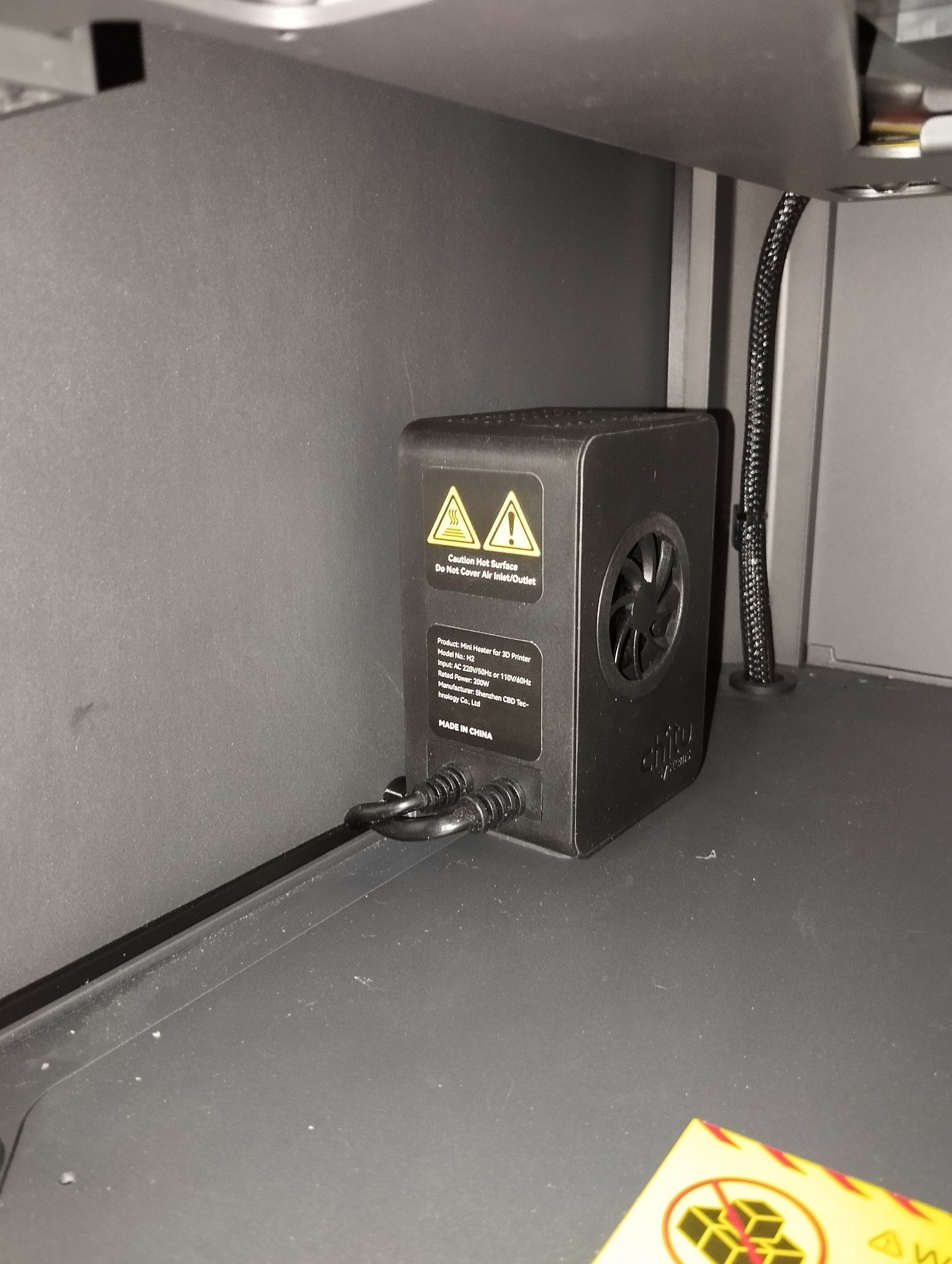 Ca fait un moment que j'avais acheté le mini chauffage de Chitu Systems https://www.chitusystems.com/products/3d-printer-heater et je ne l'avais jamais installé définitivement sur la Centauri Carbon, dernièrement j'ai trouvé ce modèle https://www.printables.com/model/1445750-centauri-carbon-75-mm-panel-spacer-with-wire-relie qui permet sans faire de trou de passer les câbles entre le carter et le châssis, il peut être ajouté soit à droite soit à gauche de l'imprimante2 points