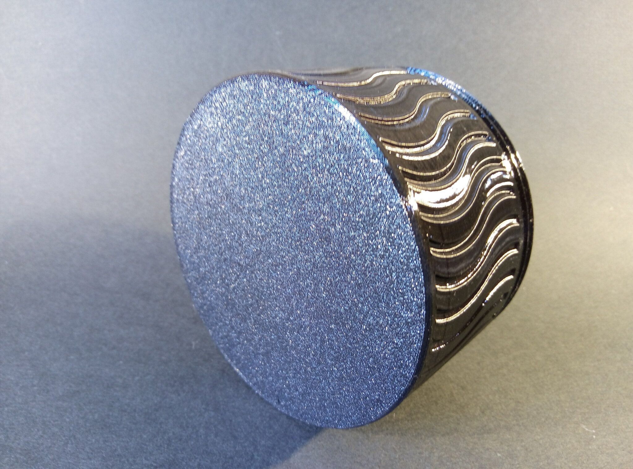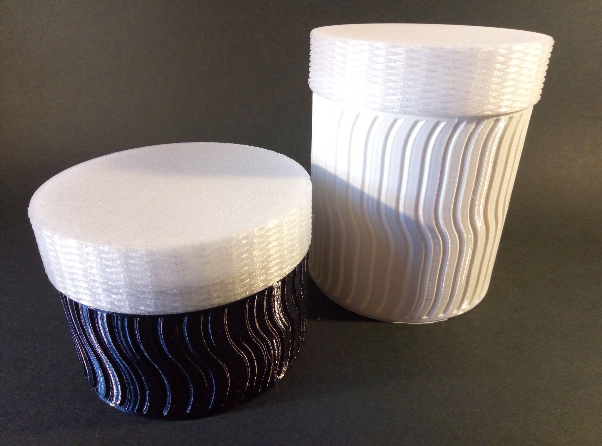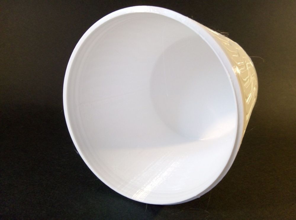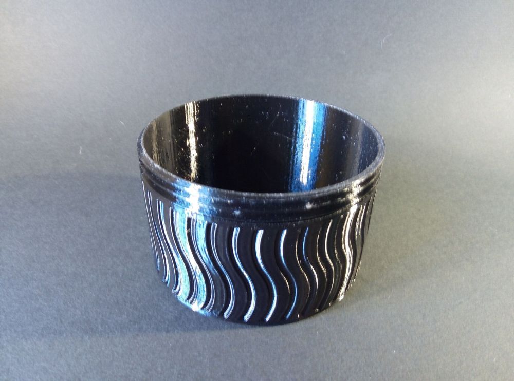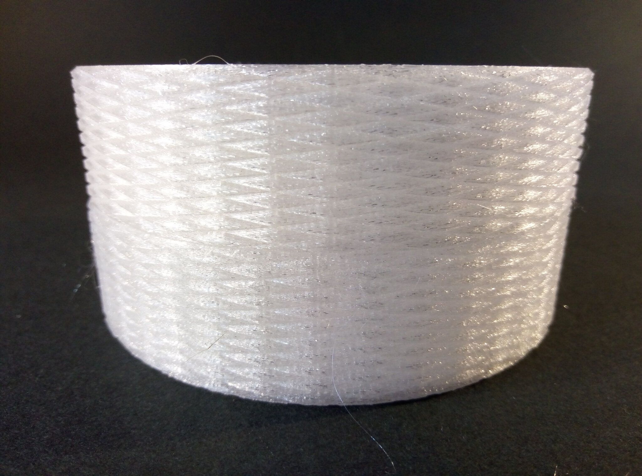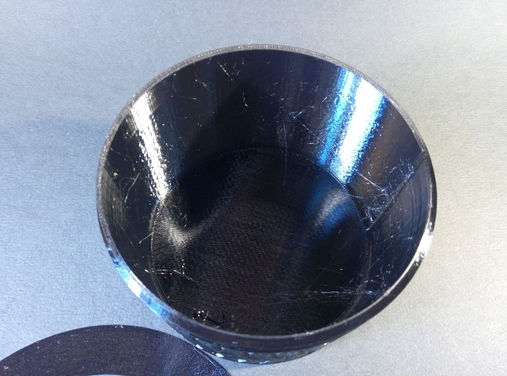 Autres impressions - ABS Je n'ai pas vraiment l'habitude d'imprimer de l'ABS. Mais je sais d'expérience que c'est un matériau bien moins facile à imprimer que le PLA. Il me semble que généralement l'ABS requiert un plateau parfaitement dégraissé car a une forte tendance à se décoller du plateau, Il faut un plateau bien chaud et une large bordure ("brim") d'impression. et préfère une enceinte chauffée pour ne pas gauchir (se déformer) et/ou avoir des délaminations des couches (les couches imprimées se séparent les unes des autres) lors de l'impression ou lors du refroidissement de ce matériau (préférer laisser l'impression refroidir lentement encore sur le plateau de l'imprimante après fin de son impression). Et il dégage une relativement forte odeur quand on l'imprime. (Être dans un espace bien ventilé et/ou avec un système de filtration de l'air et/ou avec un système d'extraction de l'air vers l'extérieur) J'ai donc préféré pour mes essais, me faire une sorte de surcaisson d'isolation thermique pour recouvrir le "capot thermique" plastique d'origine, pour tenter de gagner quelques degrés dans l'enceinte de l'imprimante lors de l'impression car sur la Centauri Carbon 2, l'enceinte n'a pas de système de chauffage dédié et c'est la chaleur diffusée par le plateau et la tête d'impression lors de l'impression qui chauffe indirectement l'enceinte. Si vous prenez le temps de préchauffer l'imprimante (buse et plateau), notez que la température cible de la buse se remet à 0 au bout de ~10 min (si imprimante inactive) avant de faire une impression en ABS. Vérifier de bien avoir sélectionné "maintenir la température" sur l'écran de contrôle de l'imprimante (cela ferme les clapets qui donnent sur le ventilateur d'extraction). Je n'ai pas trouvé comment faire l'équivalent de "maintenir la température" depuis l'onglet "Device" sous Elegoo Slicer v1.3.2.9 ( Firmware 01.03.01.89) Pour l'ensemble des impressions ABS suivantes, j'ai utilisé le profil filament "Elegoo ABS @ECC2" modifié (buse 270°C, plateau 110°C au lieu de 90°C, MVS 18 mm³/s, Flow 0.98 %) Filaments utilisés : ABS White Velleman, ABS Natural Velleman. Happy Octopus Pen Holder - Kumy https://www.nexprint.com/en/models/G2140368 Filament utilisé : ABS White Velleman Même fichier d'impression Filament utilisé : ABS Natural Velleman Zen Turtle Tray - Kumy https://www.nexprint.com/en/models/G8779612 Filament utilisé : ABS White Velleman Même fichier d'impression Filament utilisé : ABS Natural Velleman Ripple Isle – Wave-Textured Desktop Organizer - Yuki&Nan https://www.nexprint.com/en/models/C0328495 avant tranchage, modification de l'échelle, uniforme, pour obtenir un objet ayant une hauteur Z = 250 mm Filament utilisé : ABS Natural Velleman Vidéo du timelapse : sylo • container - h3liØ https://www.nexprint.com/en/models/G2102568 Mais avant de découper, sous le trancheur ElegooSlicer (v1.3..2.9), j'ai mis sur le même plateau le corps de la boite la moins haute avec un couvercle ( chaque élément est seul sur un plateau dans le fichier .3mf fourni par l'auteur) On peut remarquer quelques petits défauts d'impression du filetage du couvercle (avoir imprimé le corps et le couvercle de la boîte en même temps sur le même plateau et donc avoir pour chaque couche des déplacements entre le corps et le couvercle sont probablement la raison de ses petites imperfections d'impression du filetage du couvercle) Ici, j'ai utilisé la fin de ma bobine d'ABS Natural Velleman avec en "auto-refill" ( initialement paramétré avec la même couleur sur l'onglet "CANVAS" de la machine pour que l'"auto-refill" fonctionne sans intervention) une bobine d'ABS White Velleman. La fonction "auto-refill" a bien fonctionné sans avoir besoin de mon intervention. La quantité de filament restant sur la fin de la bobine d'ABS Natural Velleman n'a permis d'imprimer que quelques-unes des premières couches de cette impression. (Comme les couleurs de filaments utilisés sont relativement proches, cela ne se voit pas vraiment sur les photos, sauf quand on regarde à l'œil et avec une lumière adaptée les faces imprimées en contact avec le plateau.) Malgré les petits défauts d'impression du filetage du couvercle, le couvercle se visse et se dévisse bien du corps de la boîte. Pour l'ensemble de ses impressions en ABS On peut noter que grâce au surcaisson d'isolation thermique fait "à l'arrache" avec les mousses de transport, placé sur le "capot thermique" d'origine, dans mon environnement d'impression à ~17°C, buse 270°C, plateau 110°C, l'enceinte arrive à atteindre les ~57°C.7 points