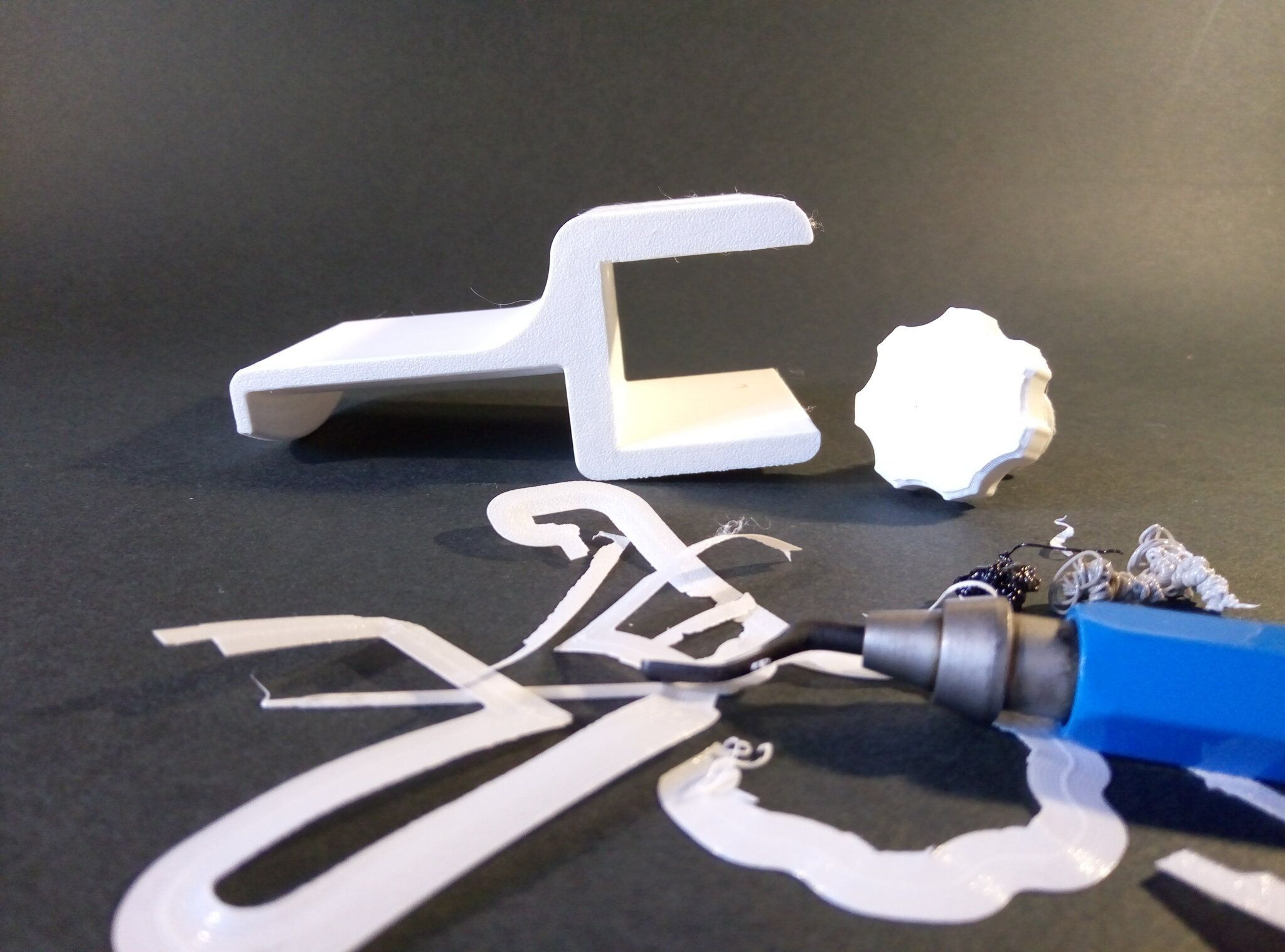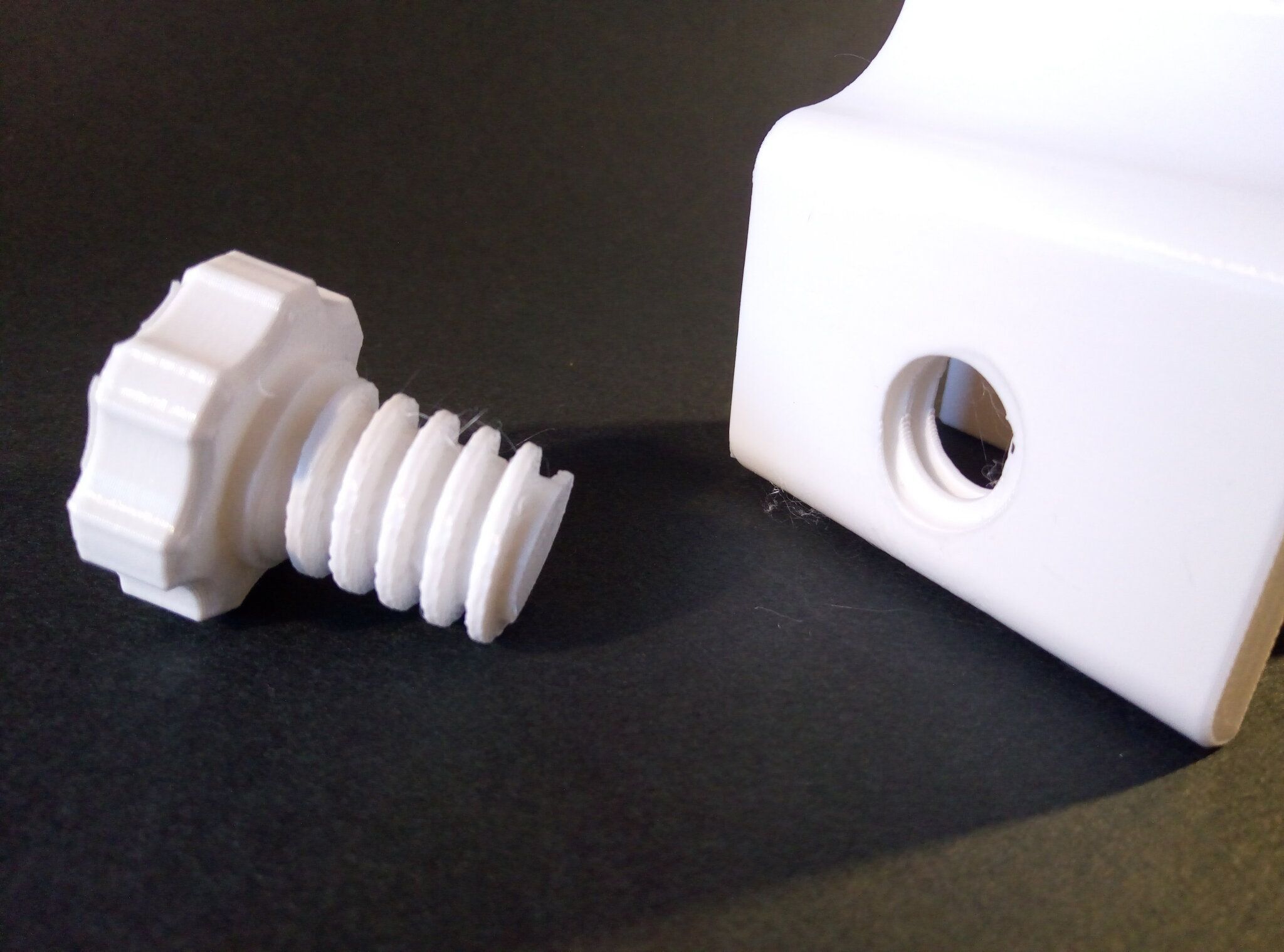 Pour le Z En principe, pour savoir si un support va pouvoir se retirer facilement on observe le tranchage pour voir si entre le support et la pièce il y a bien une couche vide. Lorsque je lis 0,15 ou 0,25mm d'espace, c'est juste pas possible si l'on travaille en 0,2mm par couche, l'intervalle sera de 0,2mm ou rien. L'observation du tranchage est fondamental pour savoir si le support va se détacher facilement. Comme la taille de mes pièces en Z est toujours par multiple de 0,2mm, l'espace dans le trancheur sera toujours de 0,2mm. Dans les autre cas, il faudra donc l'ajuster en fonction de ce que l'on voit sur le tranchage, une couche vide entre le support et la pièce. Il n'y donc pas une valeur générique mais une valeur différente pour chaque cas. Un support se détache facilement parce qu'il manque une couche entre lui et la pièce imprimée. Pour ceux qui utilisent une autre matière pour créer l'interface, on a alors un support qui est de la même matière que la pièce mais la ou les dernières couches sont d'une matière différente (il faut avoir un AMS ou similaire pour utiliser cette option). Par exemple une pièce en PLA et son interface en PETG. Dans ce cas, comme les deux matières ne se collent pas entre elles, il n'y a pas de vide entre le support et la pièce. Sur Bambu Studio on ne doit pas utiliser l'option Support/base d'interface si on dispose pas de deux matières distinctes, interface et pièce. Pour X,Y on doit mettre une distance suffisante pour que le support ne se colle pas à la pièce. Pour moi c'est 0,35mm mais on peut aller jusqu'à 1mm, rien ne va s'écrouler. Dernièrement pour exercice j'ai imprimé en PLA une table à 4 pieds et le plateau en haut. J'ai donc mis un support au dessous avec une interface d'une coucher en PETG. Une fois imprimée, j'ai retiré très facilement le bloc support et ensuite d'une pièce la couche d'interface en PETG. Le dessous de la table est donc bien plus propre que sans couche d'interface, mais dans les deux cas le support se retire très facilement. Sans interface (couche manquante entre support et pièce) On remarque des fils qui tombent de 0,2mm. Au toucher c'est un peu rugeux Support avec interface PETG. Au touché c'est comparable à une couche de dessous ou dessus3 points